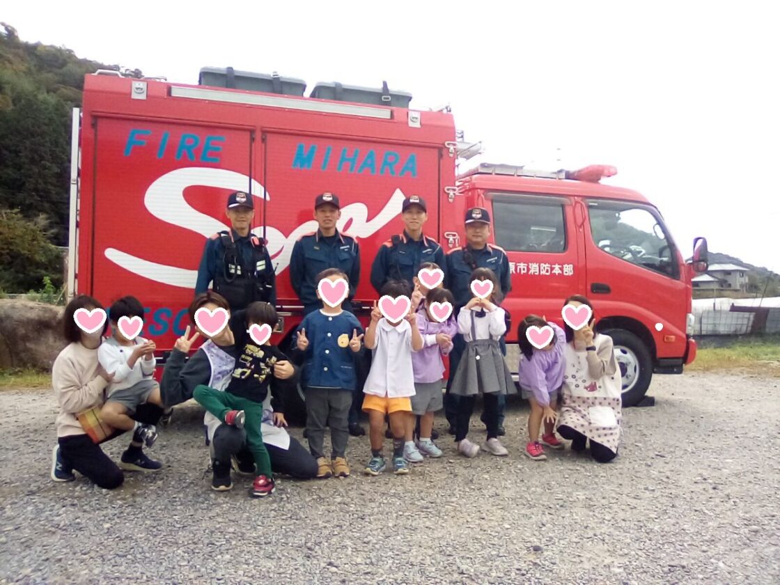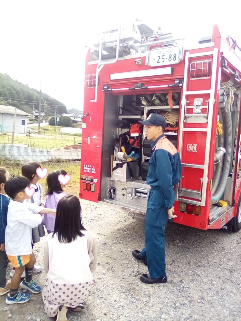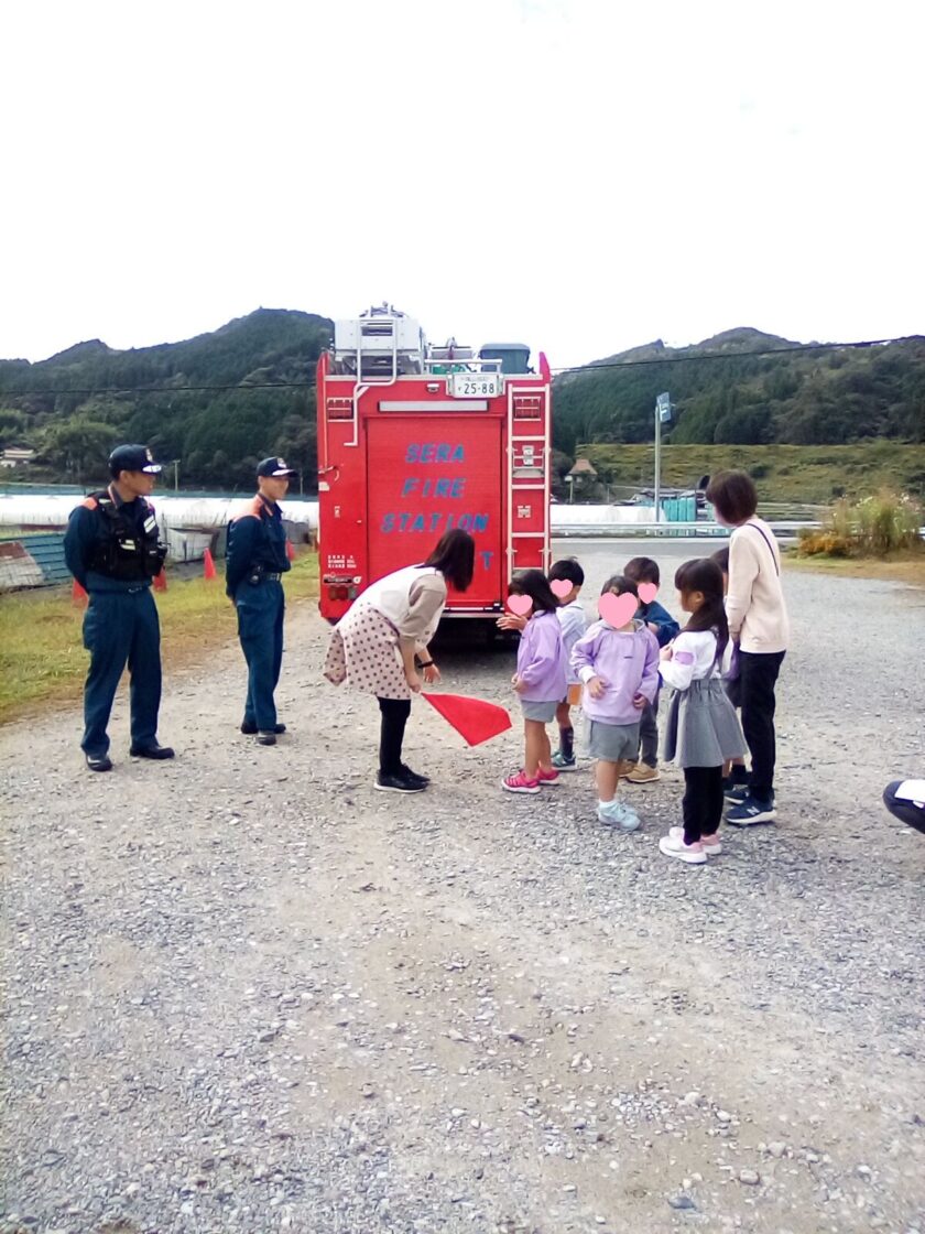 今日は、せらの里へ消防点検に来られた時に、消防車を見学させていただいた時の子どもたちの様子を紹介します。