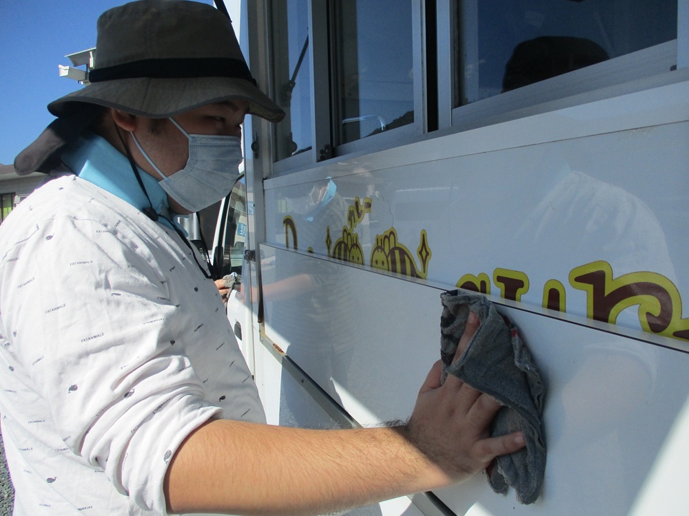 その準備で、利用者さんとキッチンカーの洗車をしました!