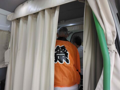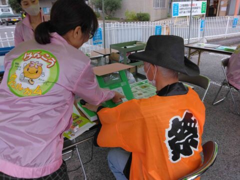 ボランティアの方や広島大学の検査技師さんの質問に答えながら