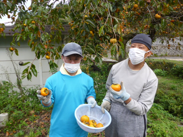 少し遠い柿も手を伸ばして収穫してくれています😊