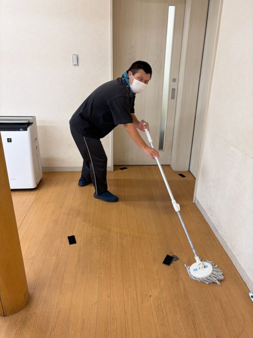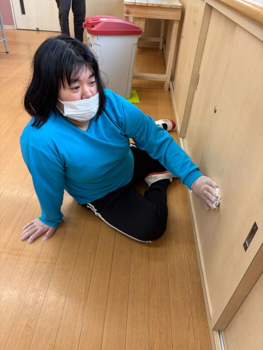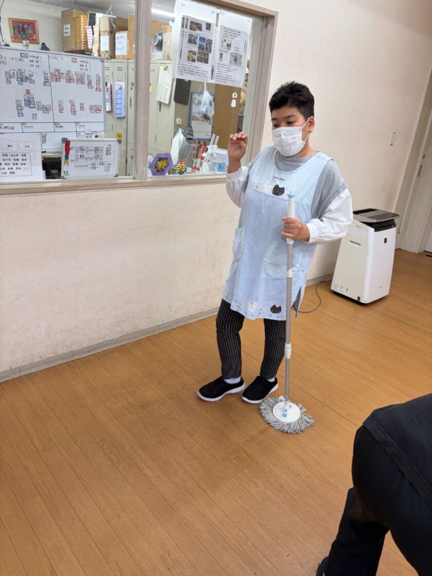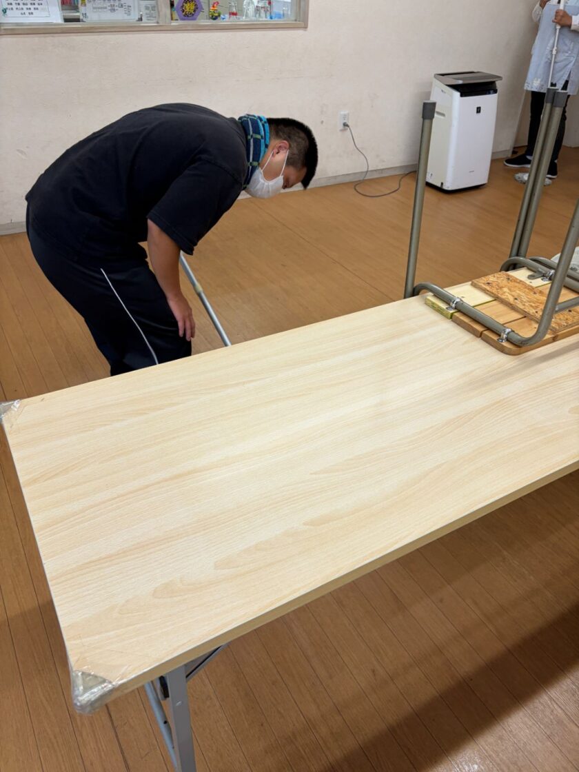 椅子を机の上にあげて、掃き掃除や掃除機掛けを済ませます。
