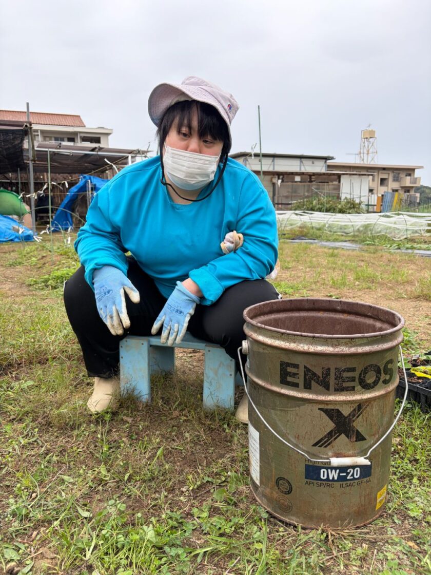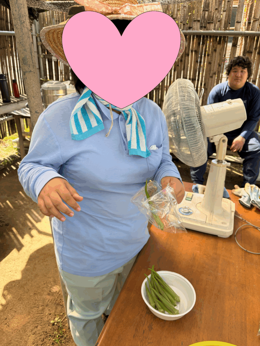 最後に一年ぶりに作業の際、帽子が被れるようになった利用者さんの写真で締め括りたいと思います!