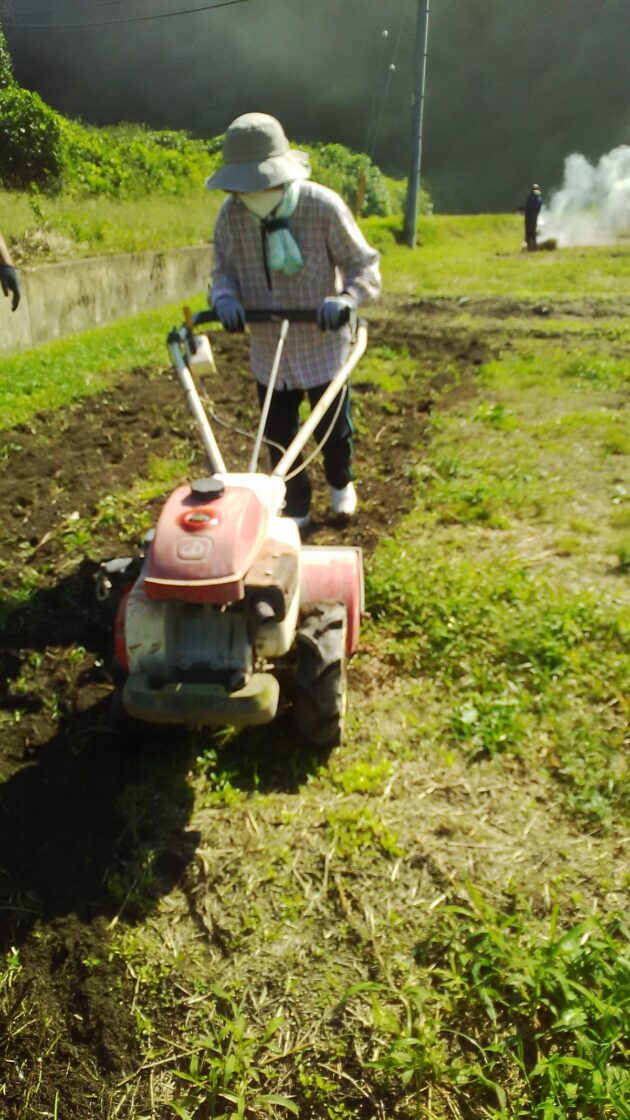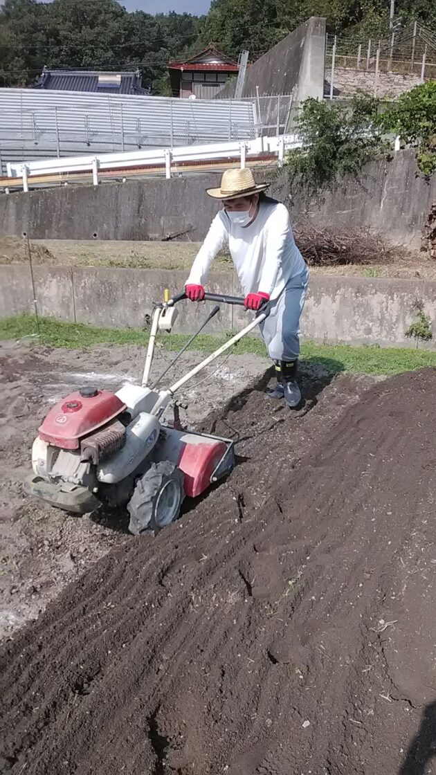 まずは 耕運機で土を柔らかく少し生えた草も一緒に🤣