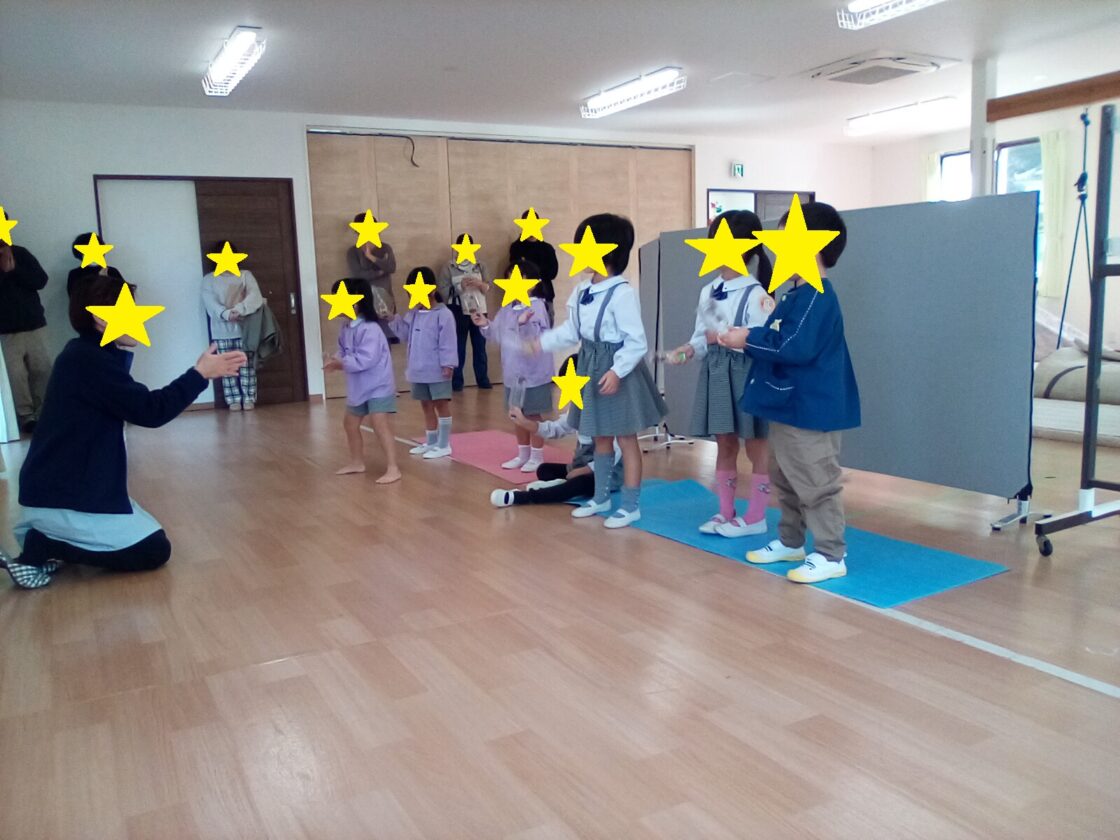 最後に、出来上がったどんぐりマラカスで音に合わせてリズム遊びをしました。お父さんお母さんにも見てもらえてみんな笑顔です!(^^)!
