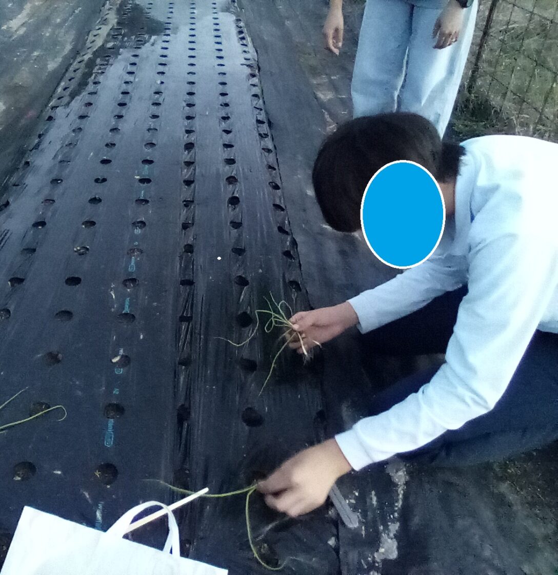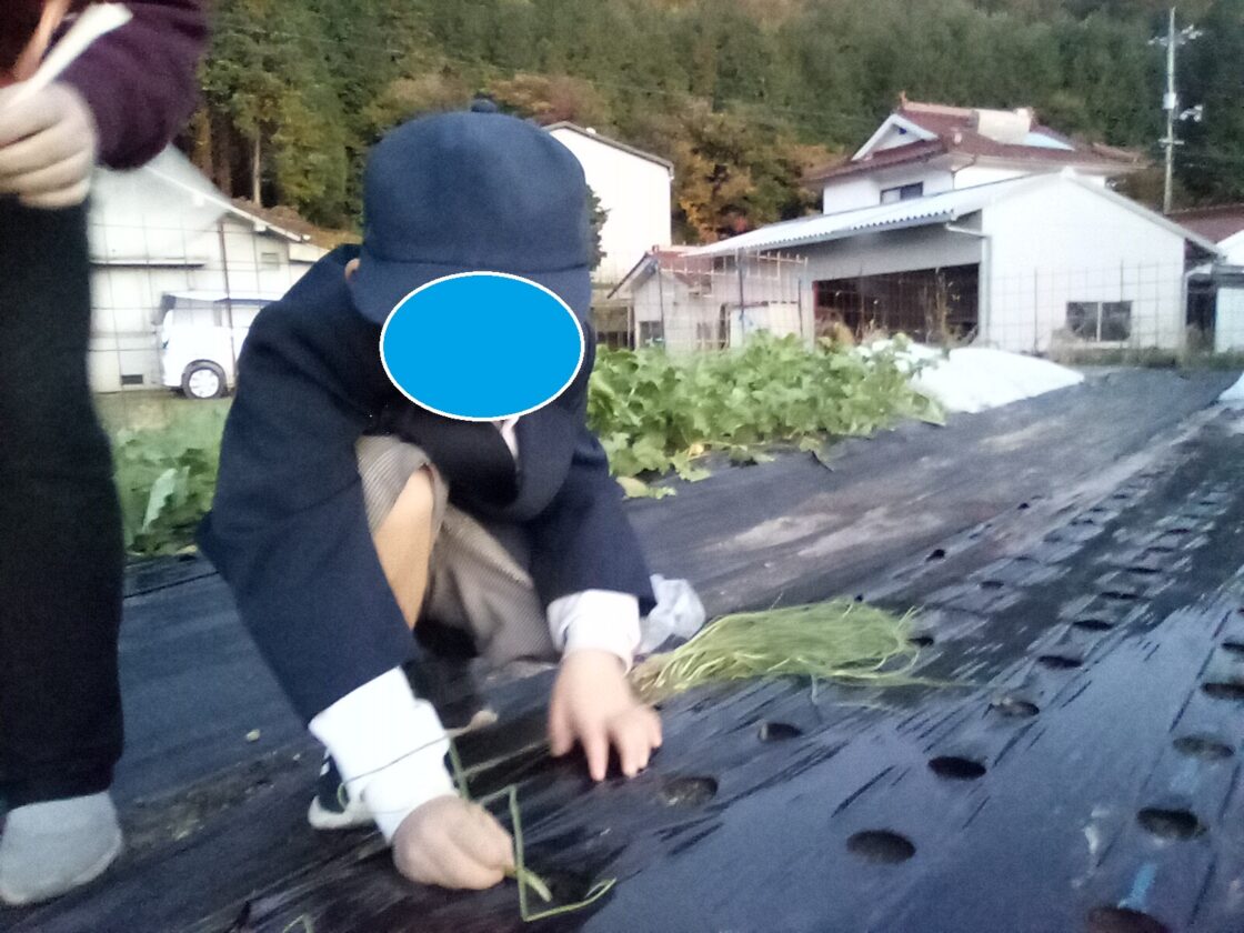 先生と「こ~んな大きい玉ねぎがたくさんできるよ~」と話をしながら合計100本の苗を無事、上手に植えられました☺