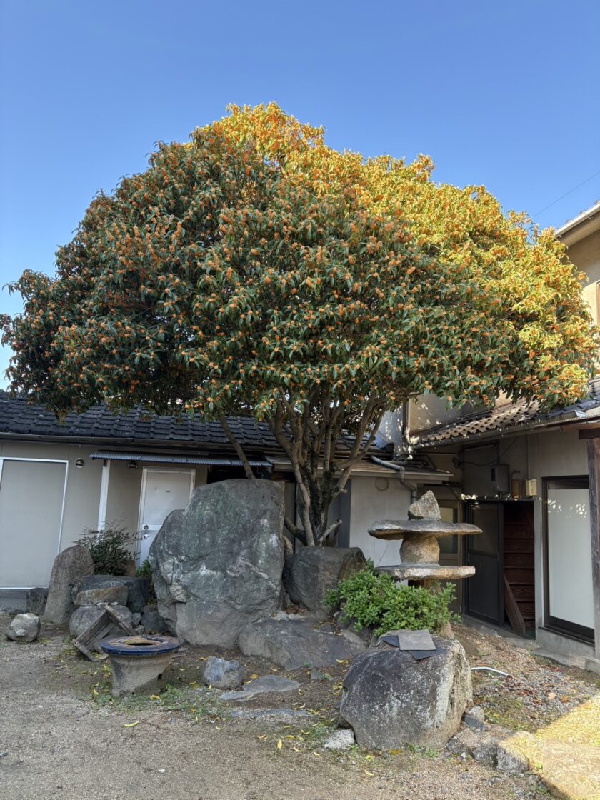 きずなの里の中庭では、今年も大きなキンモクセイが満開です🏵️