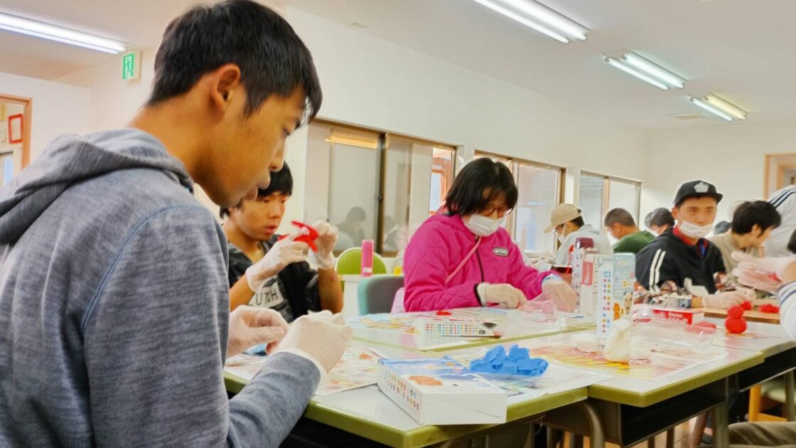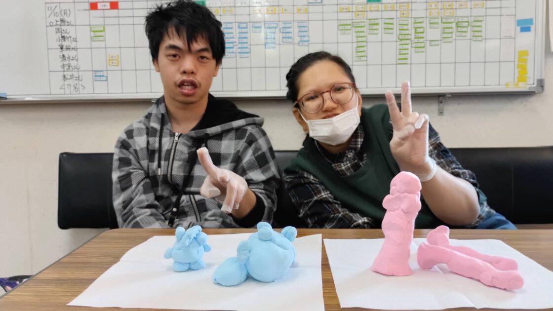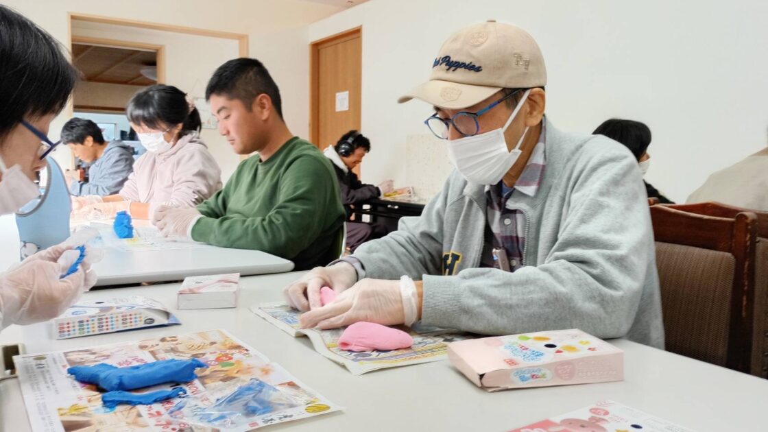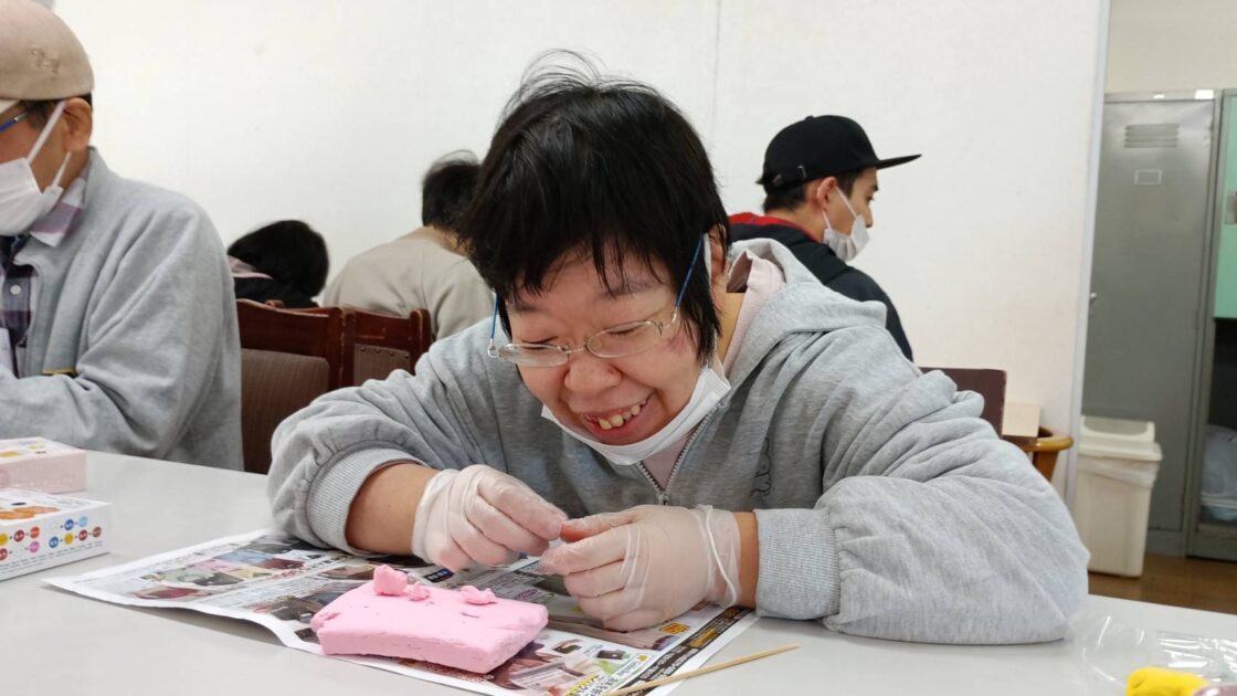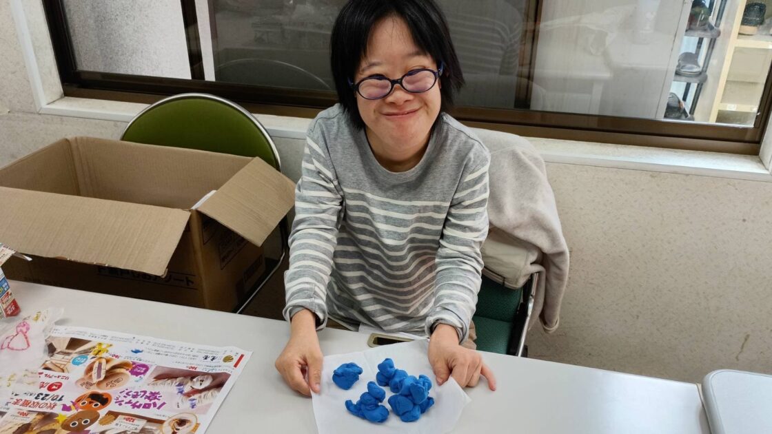 いろんな色の紙粘土を使って創作活動をレクで行いました。
