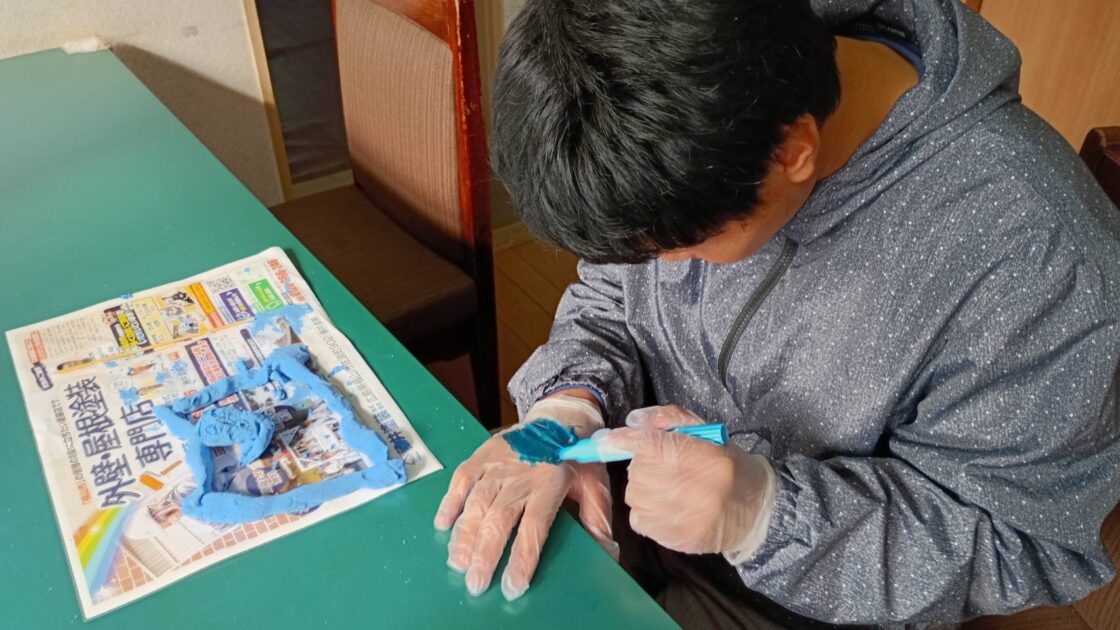 紙粘土で使用した使い捨ての手袋も芸術家たちの目には捨てるものには見えていません‼️