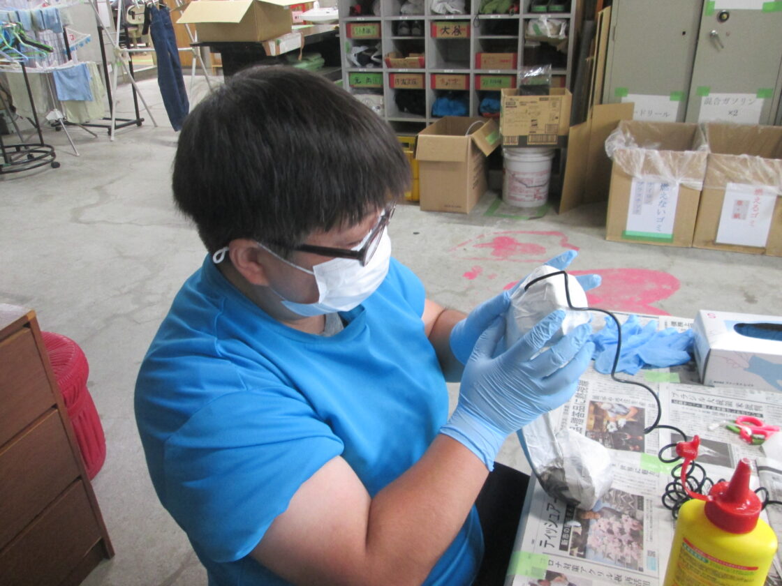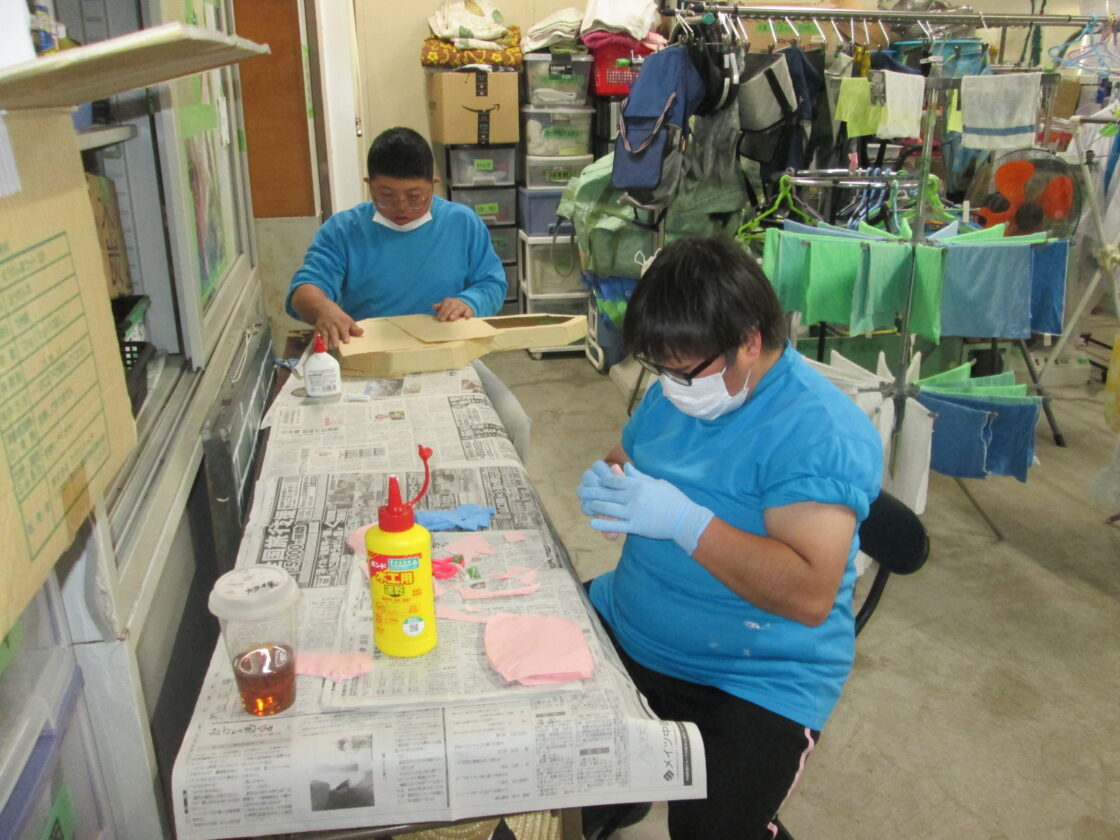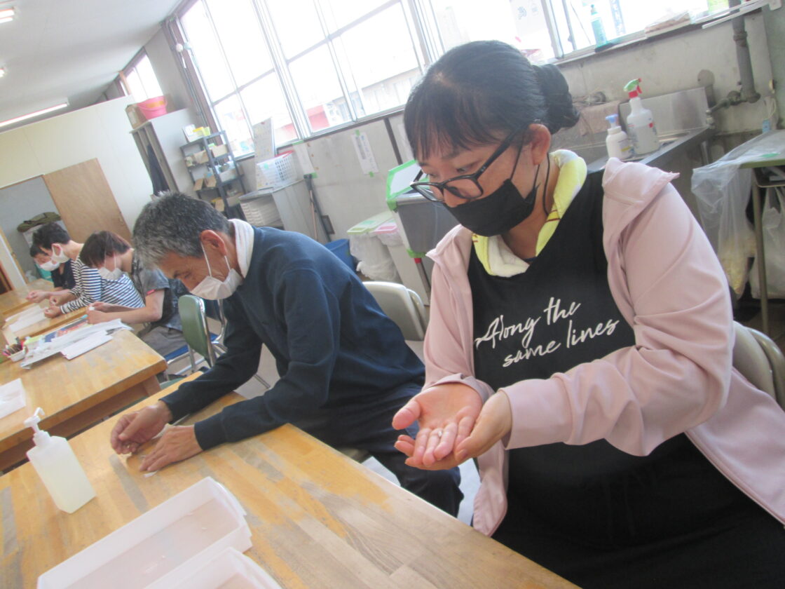 外注班の立体作品を遠目に眺めて「すごいね」と声があがったり、内職班の地道な作業を見て「こんなにきれいに丸められるんだ!」と感心する方がいたりと、