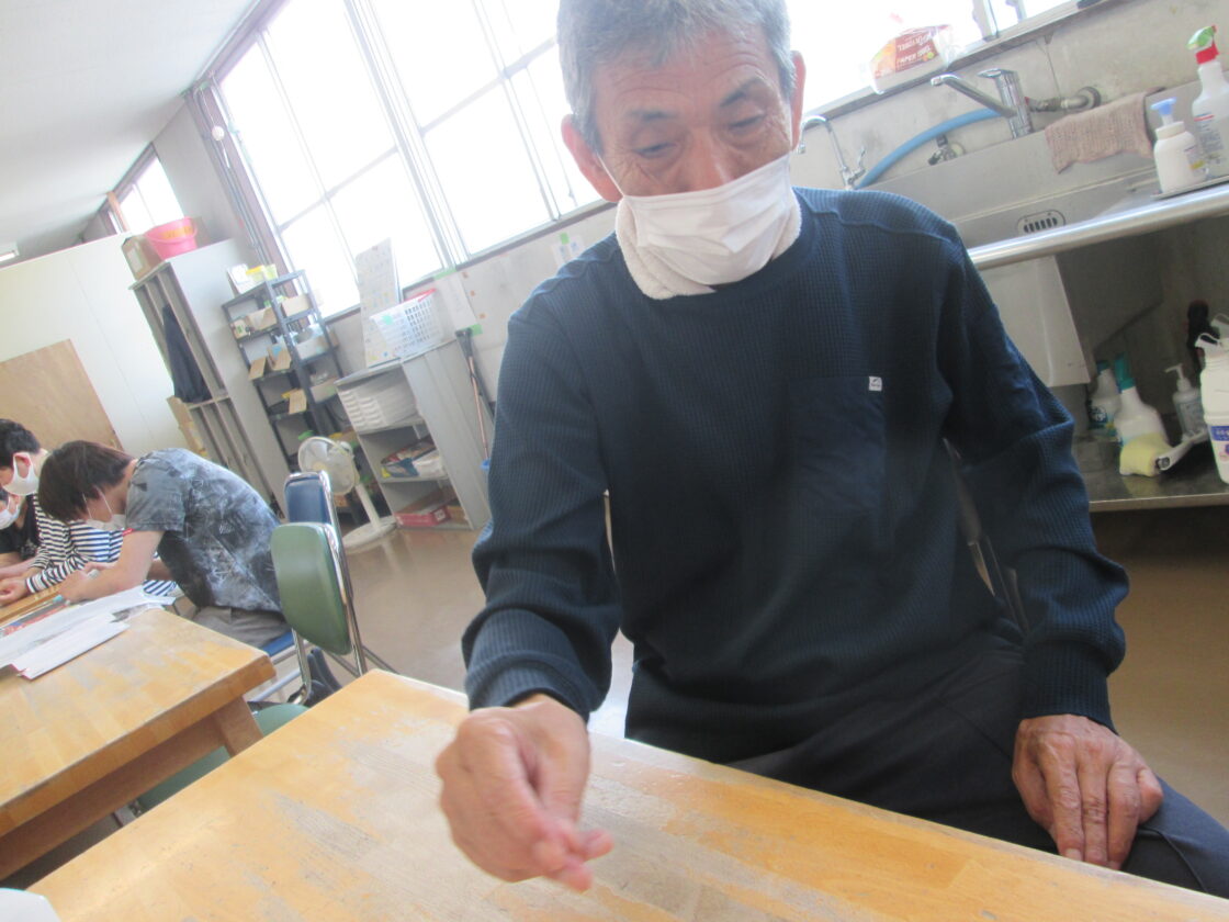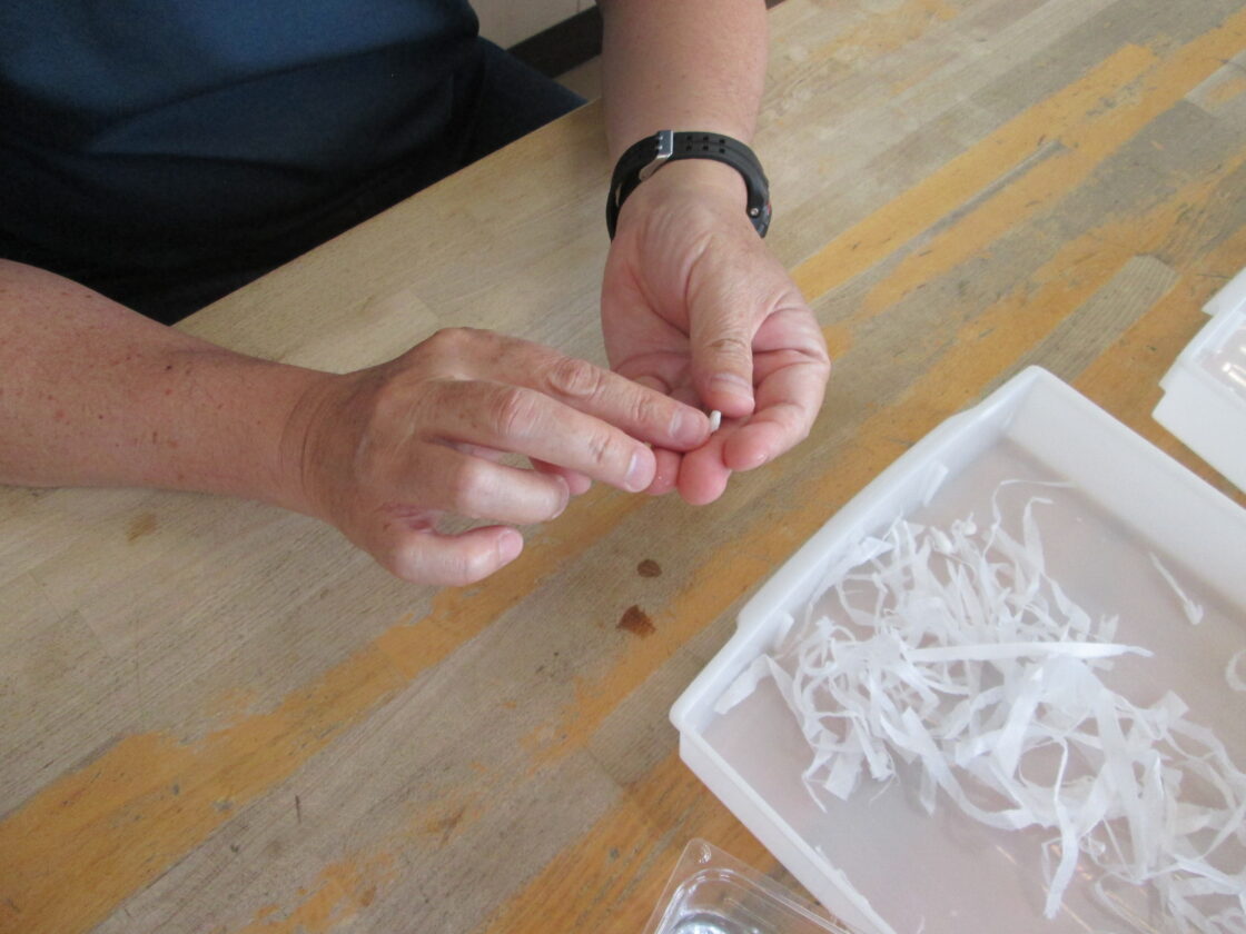 一方の内職班では、内職作業後の空いた時間を利用し、紙を小さく小さく丸める作業をおこなっています!