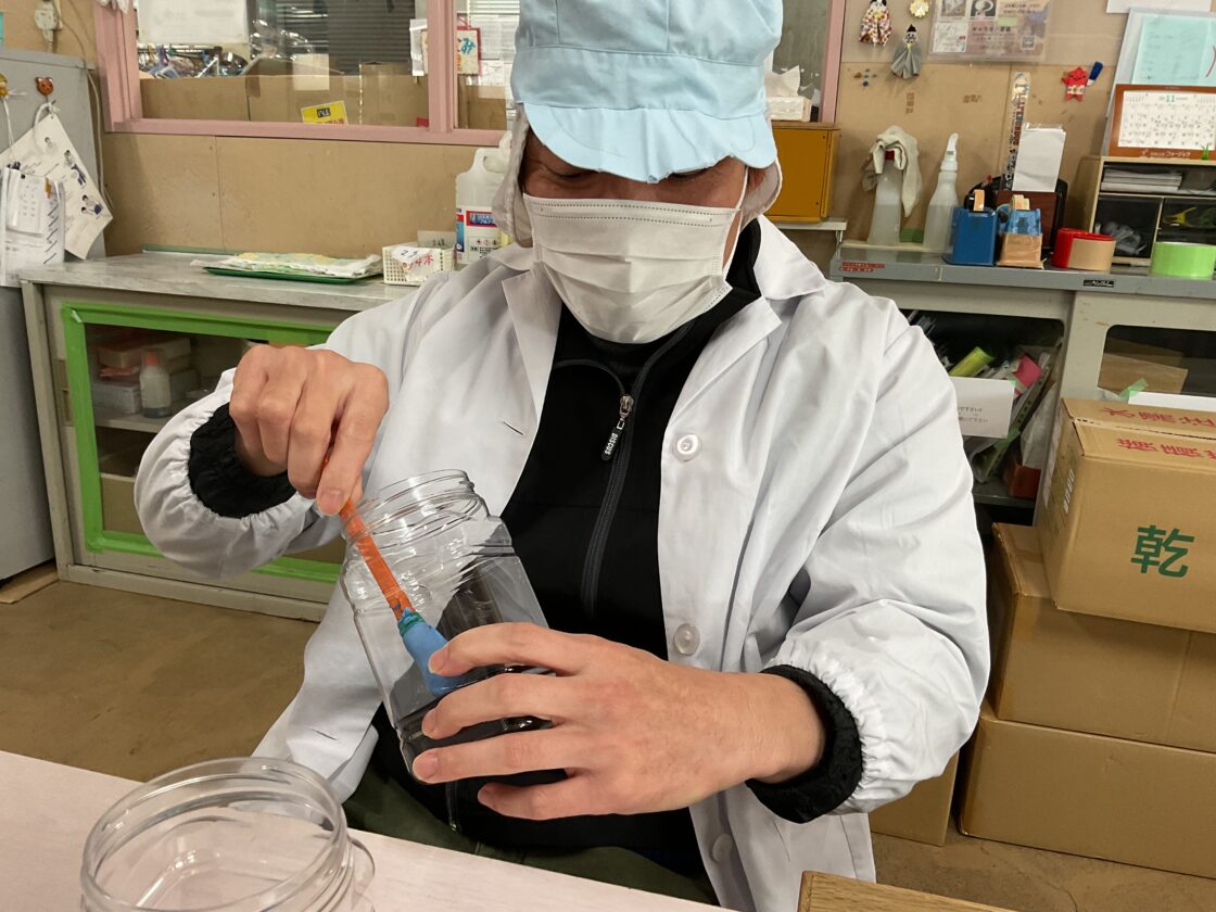 きちんと入っているか、石灰が破れていないかをしっかり確認します。