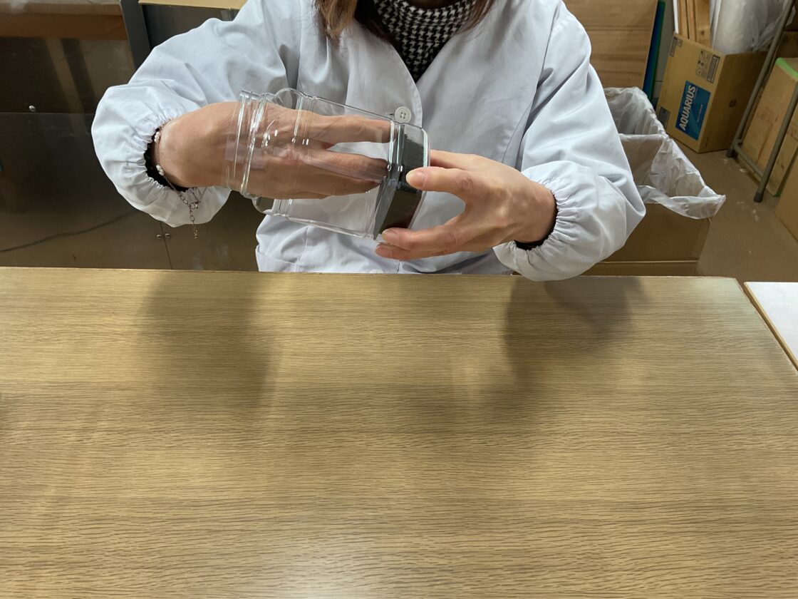 袋を少しずつずらしながら、カップがつぶれないよう慎重に全部取り出していきます。