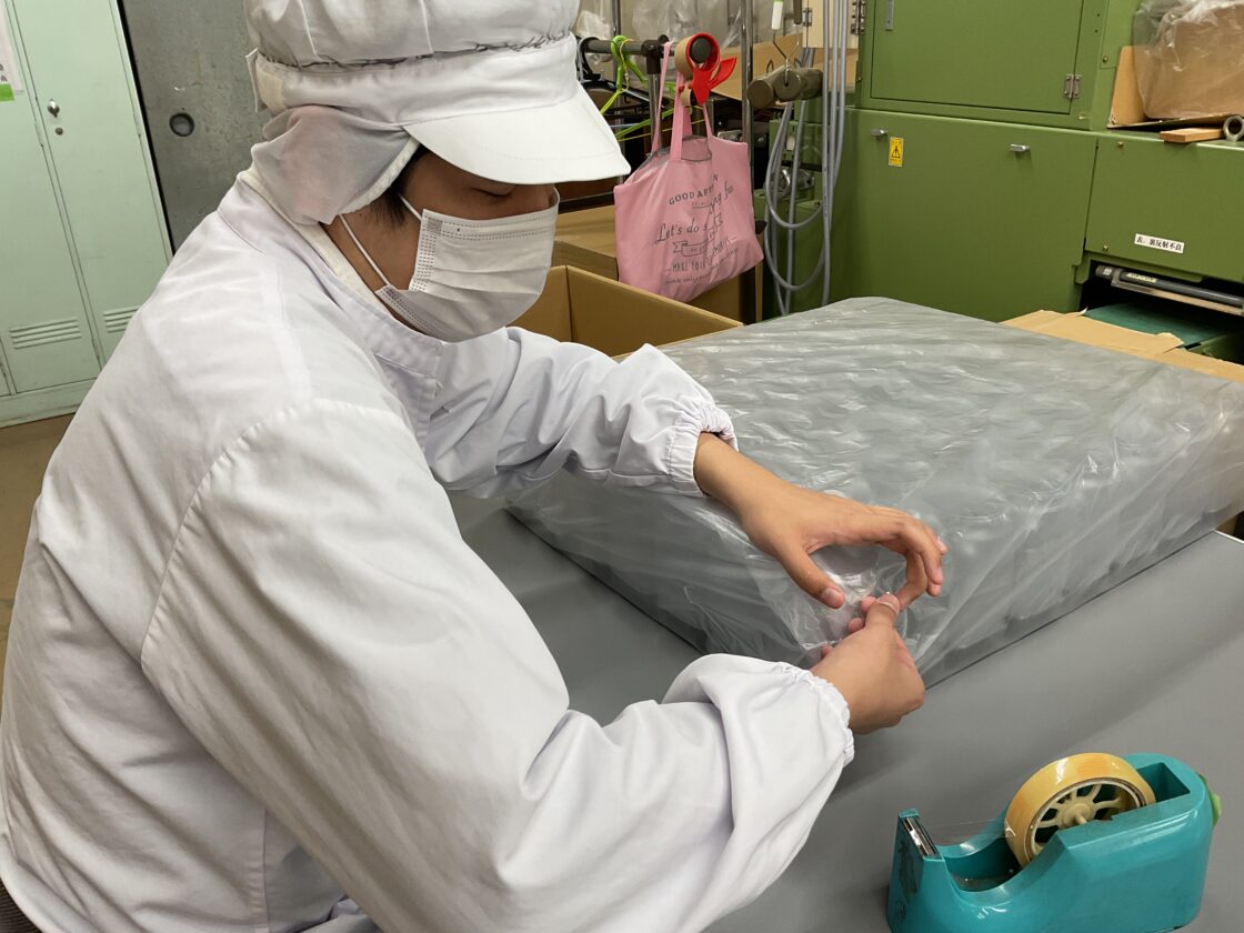 きれいに締めた袋を箱に入れ、納品の準備をします。