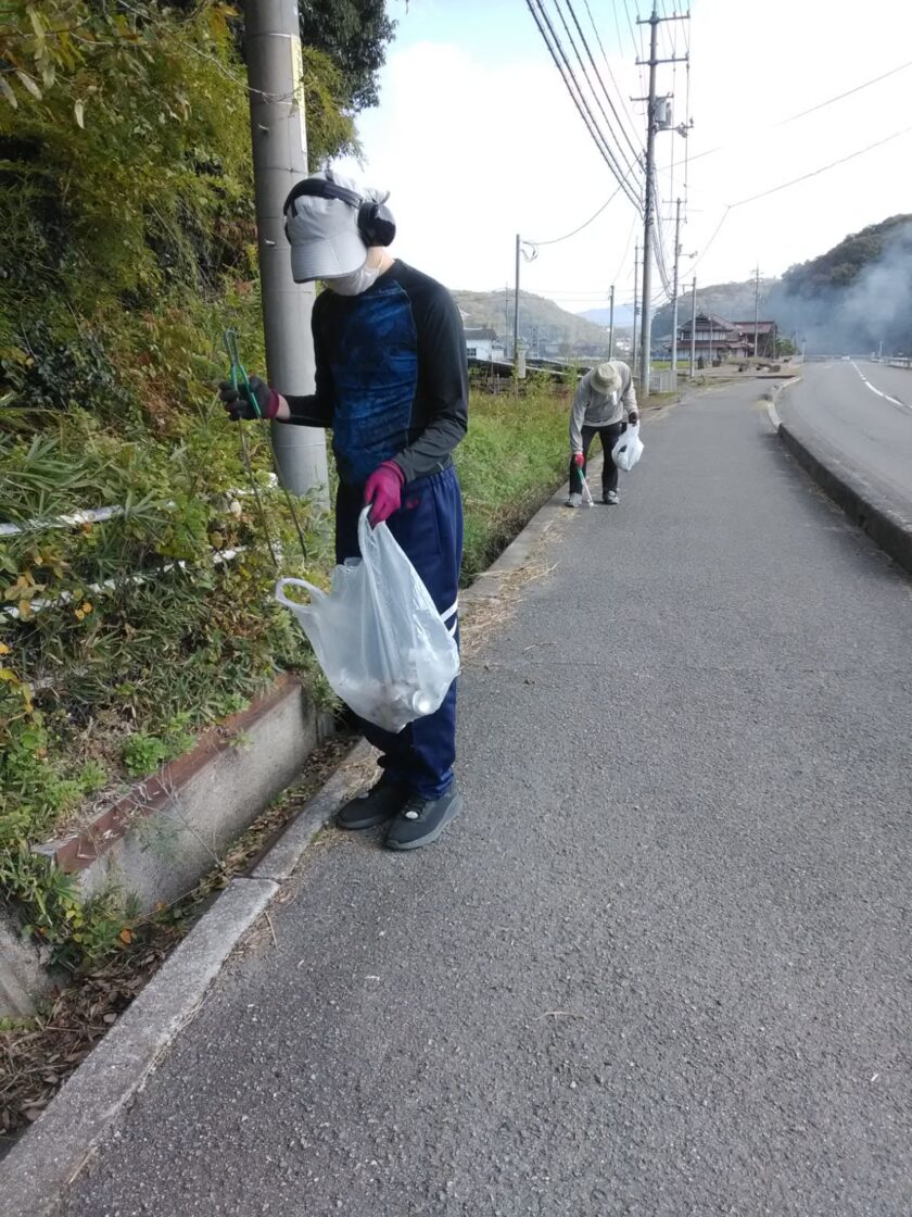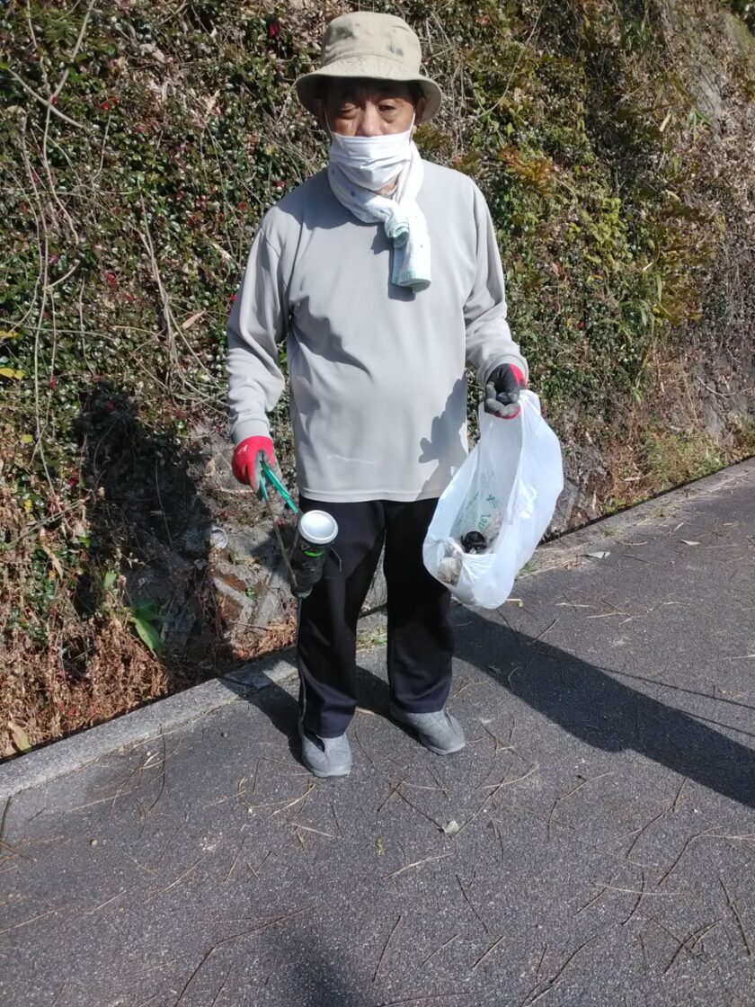 たくさんのゴミを競争するように集めている利用者さんたち とても綺麗になりました✨