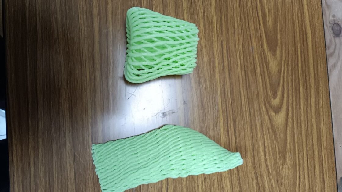 フルーツキャップは果物を販売する際に果物を包んで保護するクッション性のあるネット状の緩衝材です。