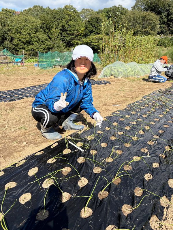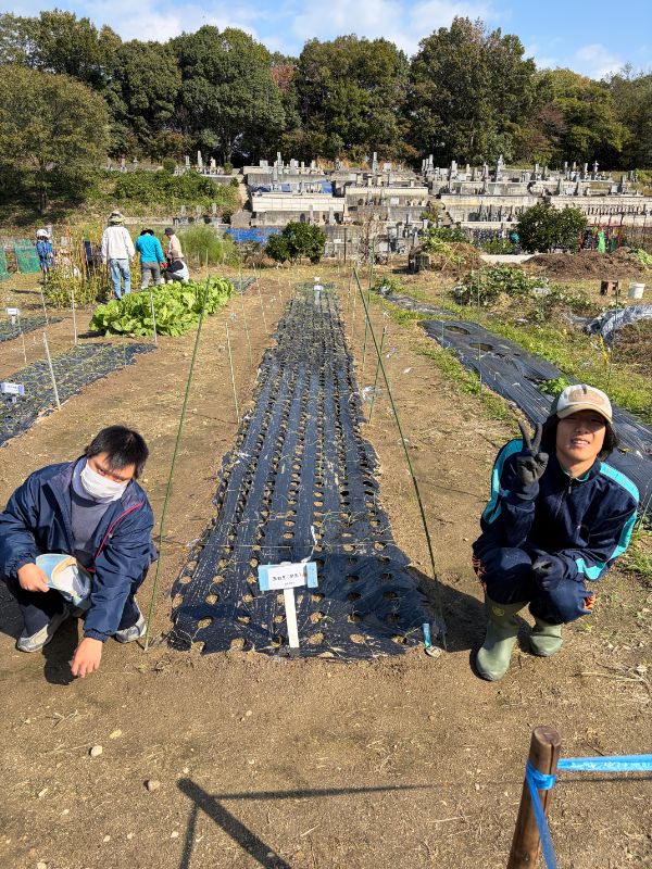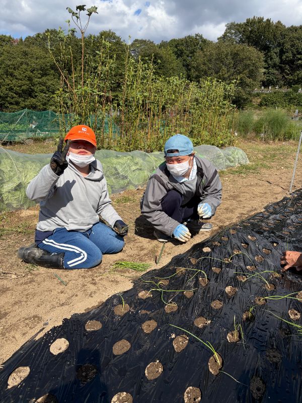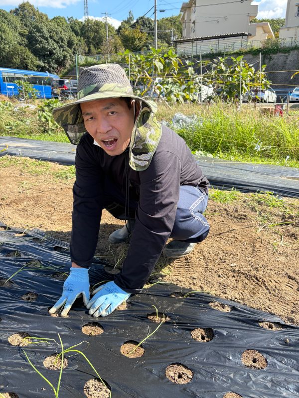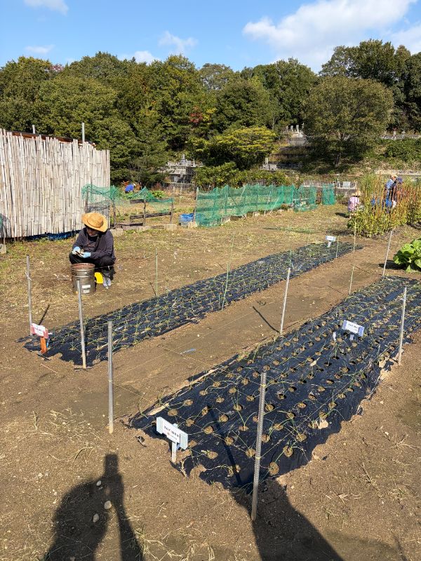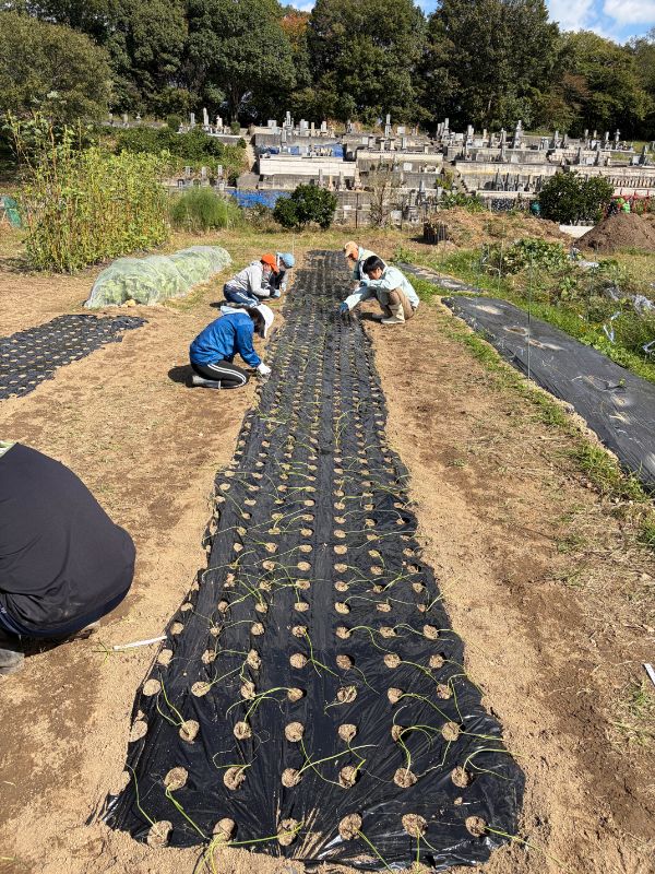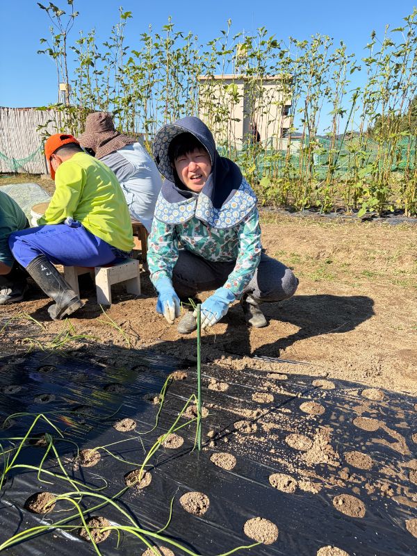 長~い畝に根気強く玉ねぎの苗を植えていきます。