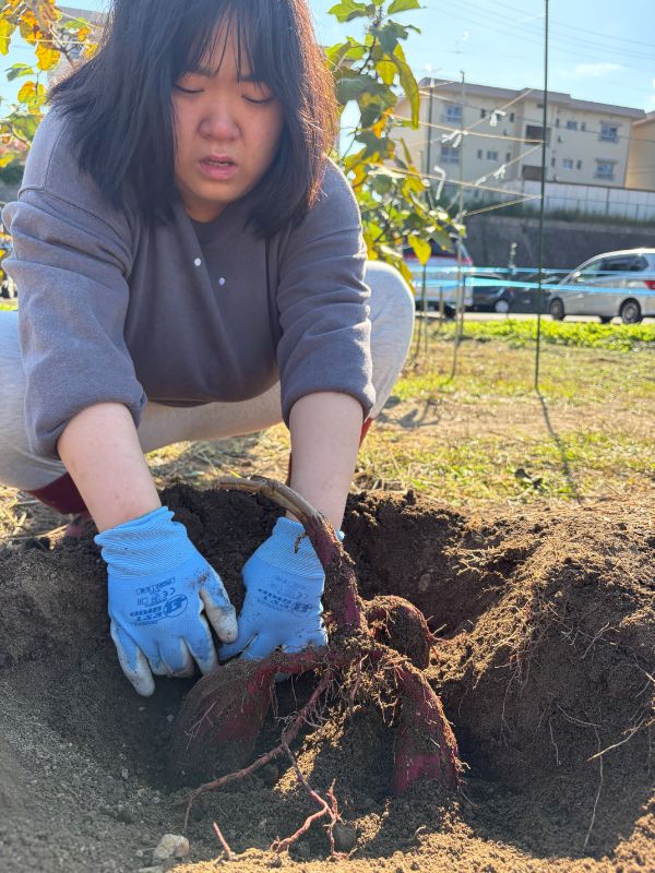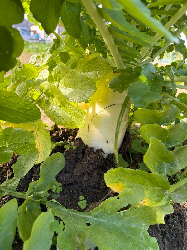 水やりをして芋を掘って、我慢できずに途中で引って・・・。