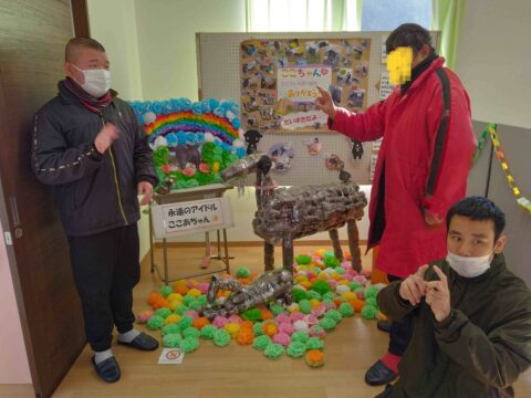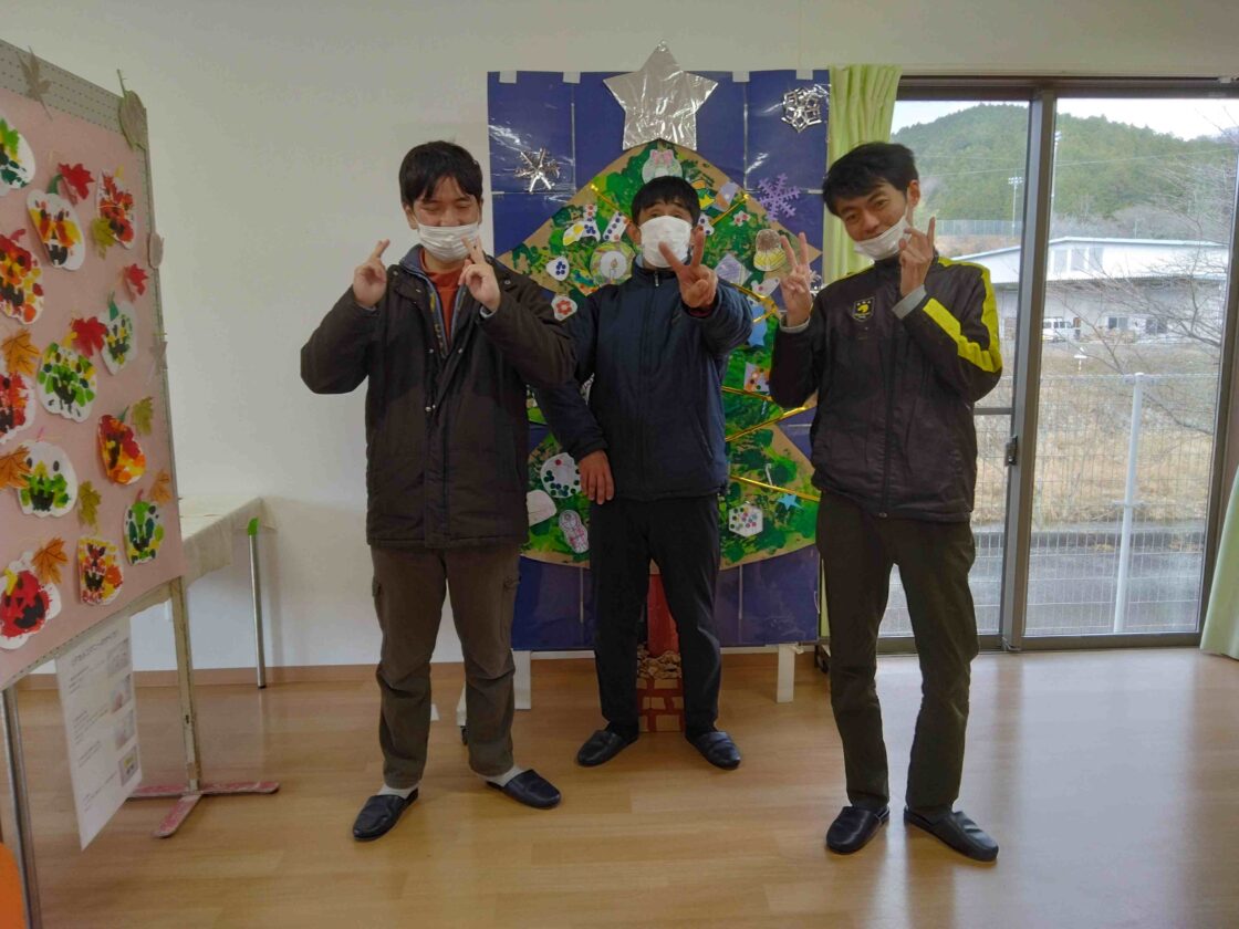 利用者さんお一人お一人が作ったツリーを森のように並べて展示中!!