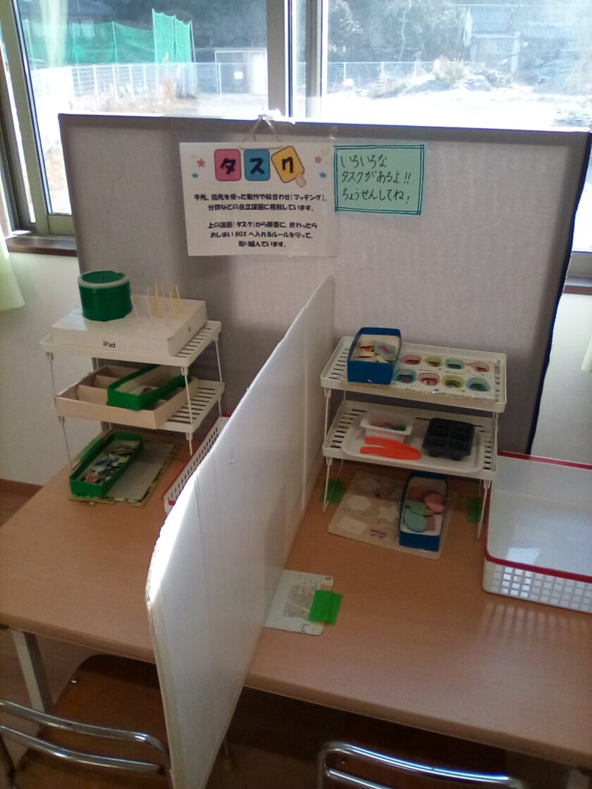 普段の療育の中で取り入れている活動です。手先を使ったり、マッチングで分類したりする自立課題になります。