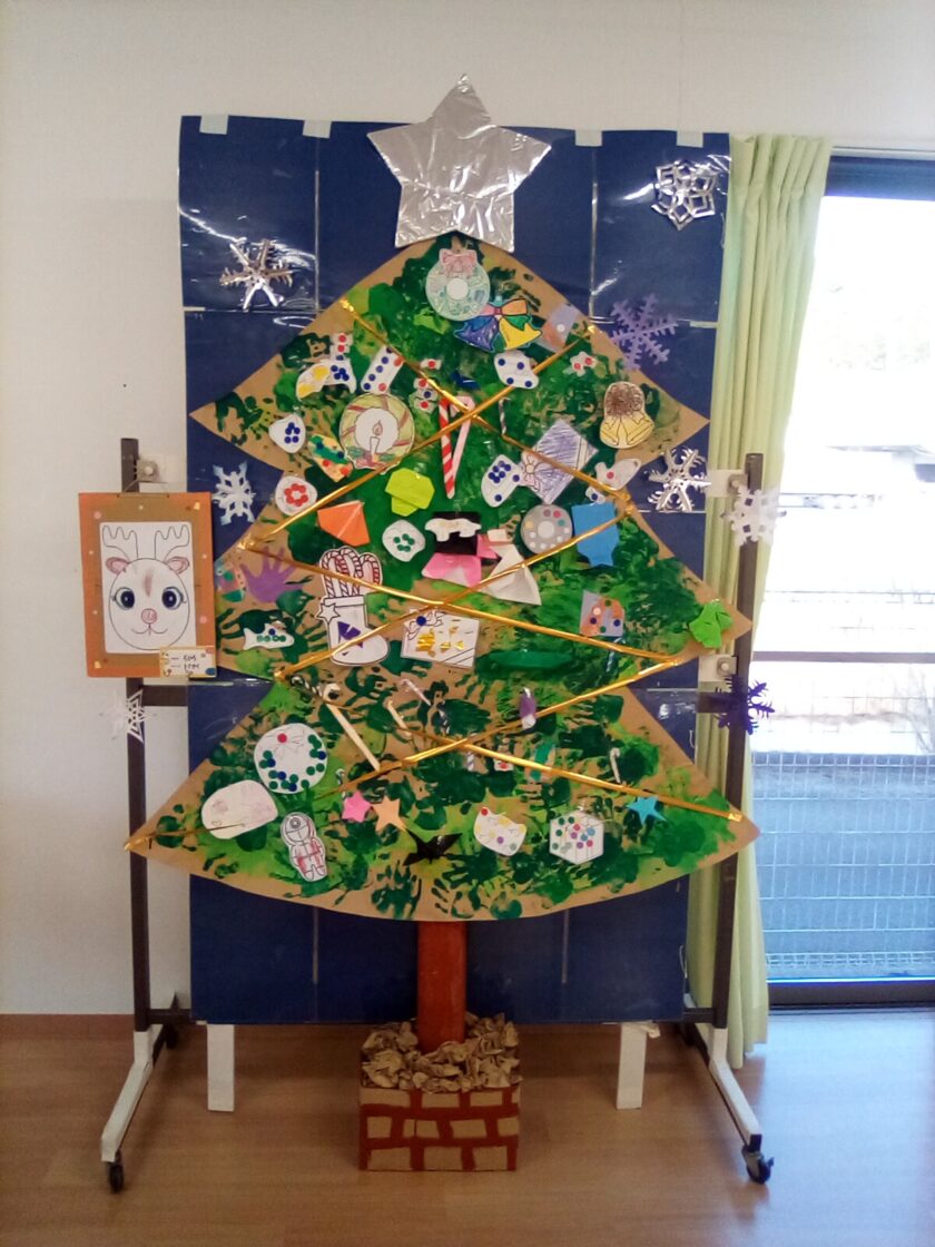 そして、みんなの小さな手で作った大きなクリスマスツリーです🎄 HAPPY CHRISTMAS 🎄