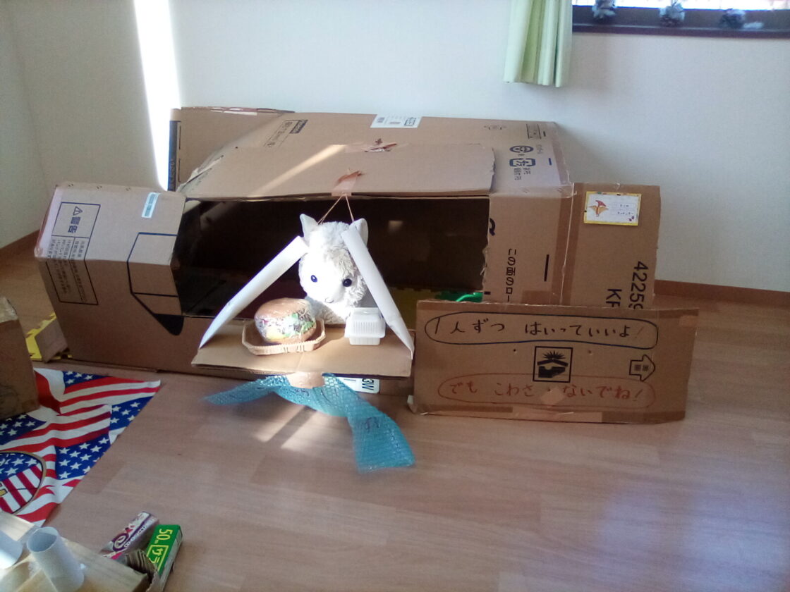 大きな段ボールで出来たのはキッチンカー🚙窓も設計してあります。