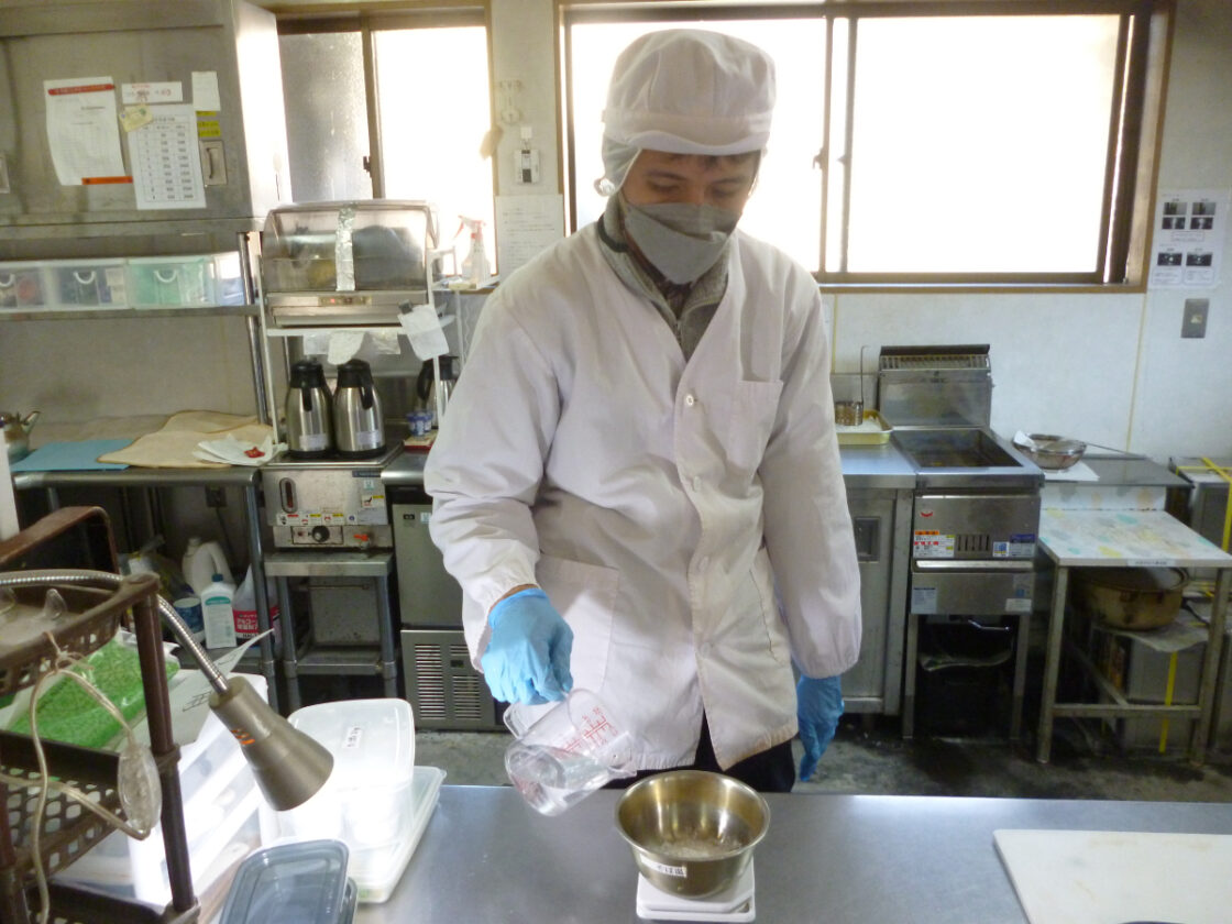 オーダーが入ると、まずはつゆを計量❢