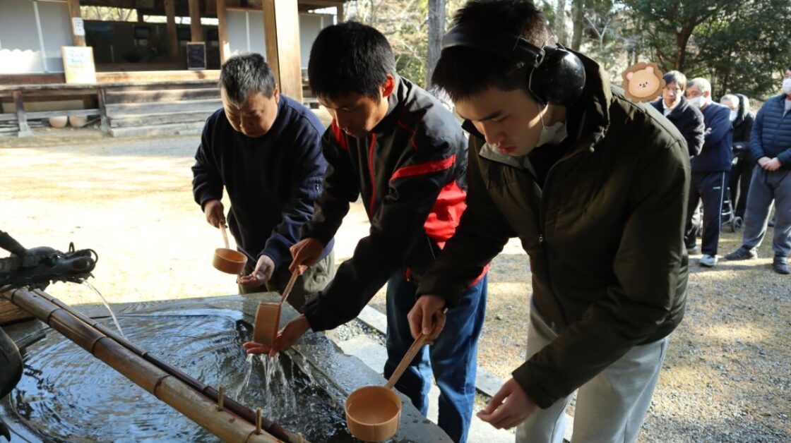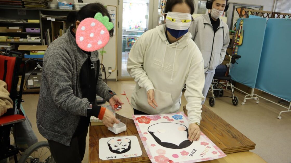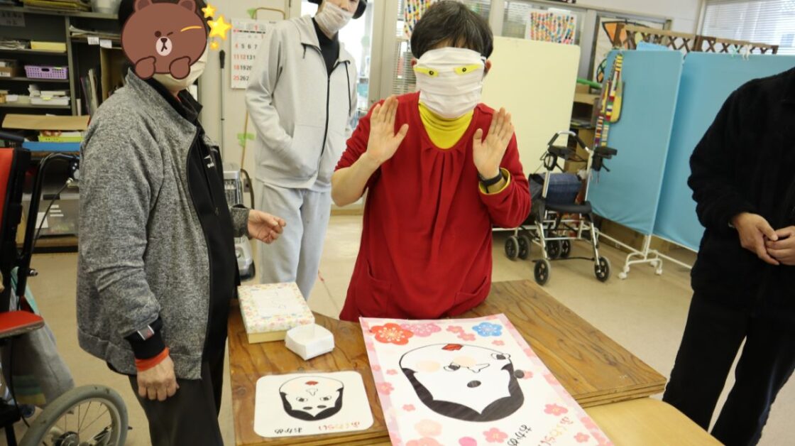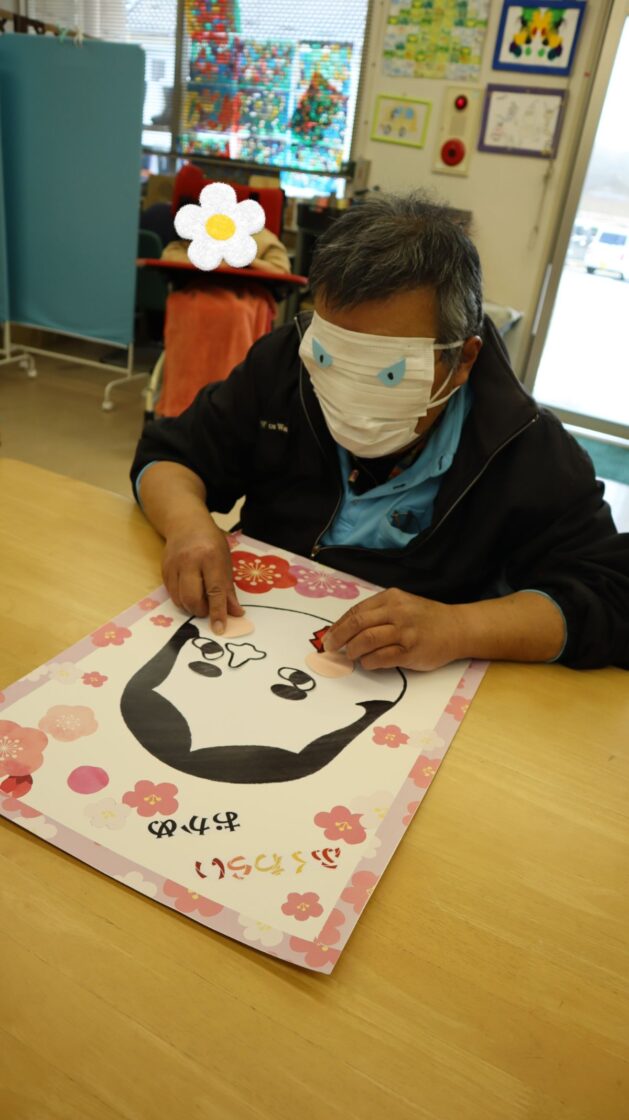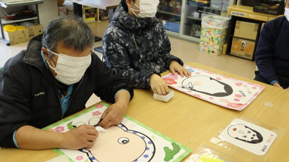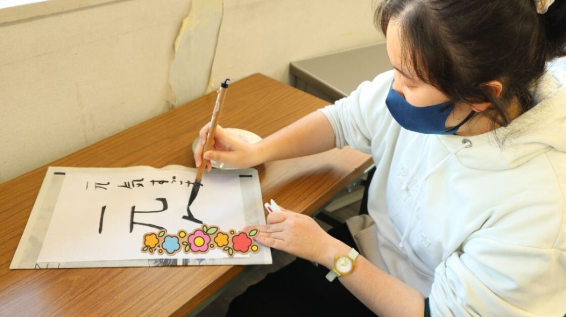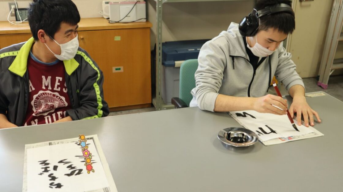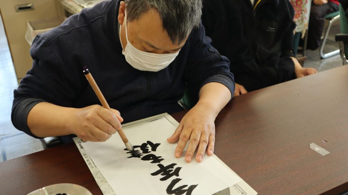 書初めでは 今年の抱負を書いて 1年間施設の中へ掲示しています