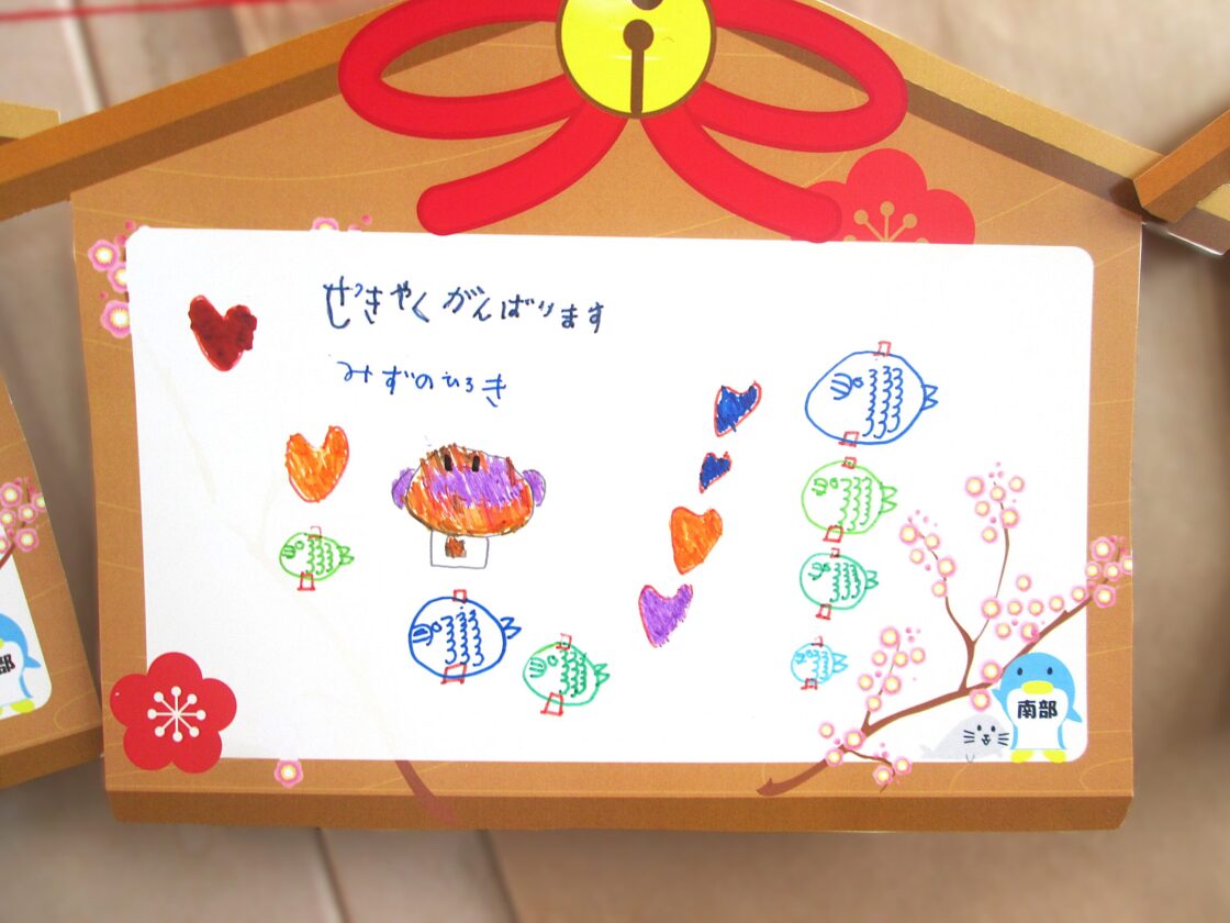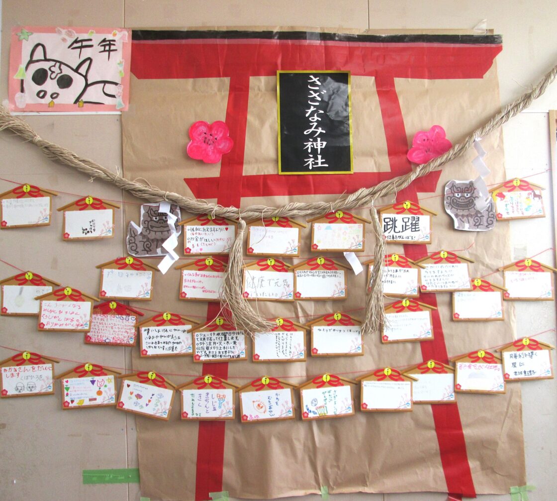 出来上がった絵馬はみんなでさざなみ神社に飾りつけ⛩️°˖✧