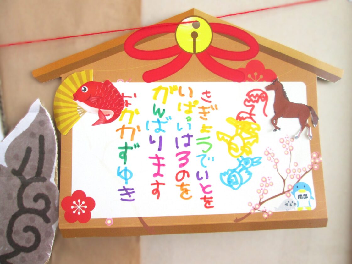 先日、芸術活動の時間にみんなで絵馬を描きました🐎🌿