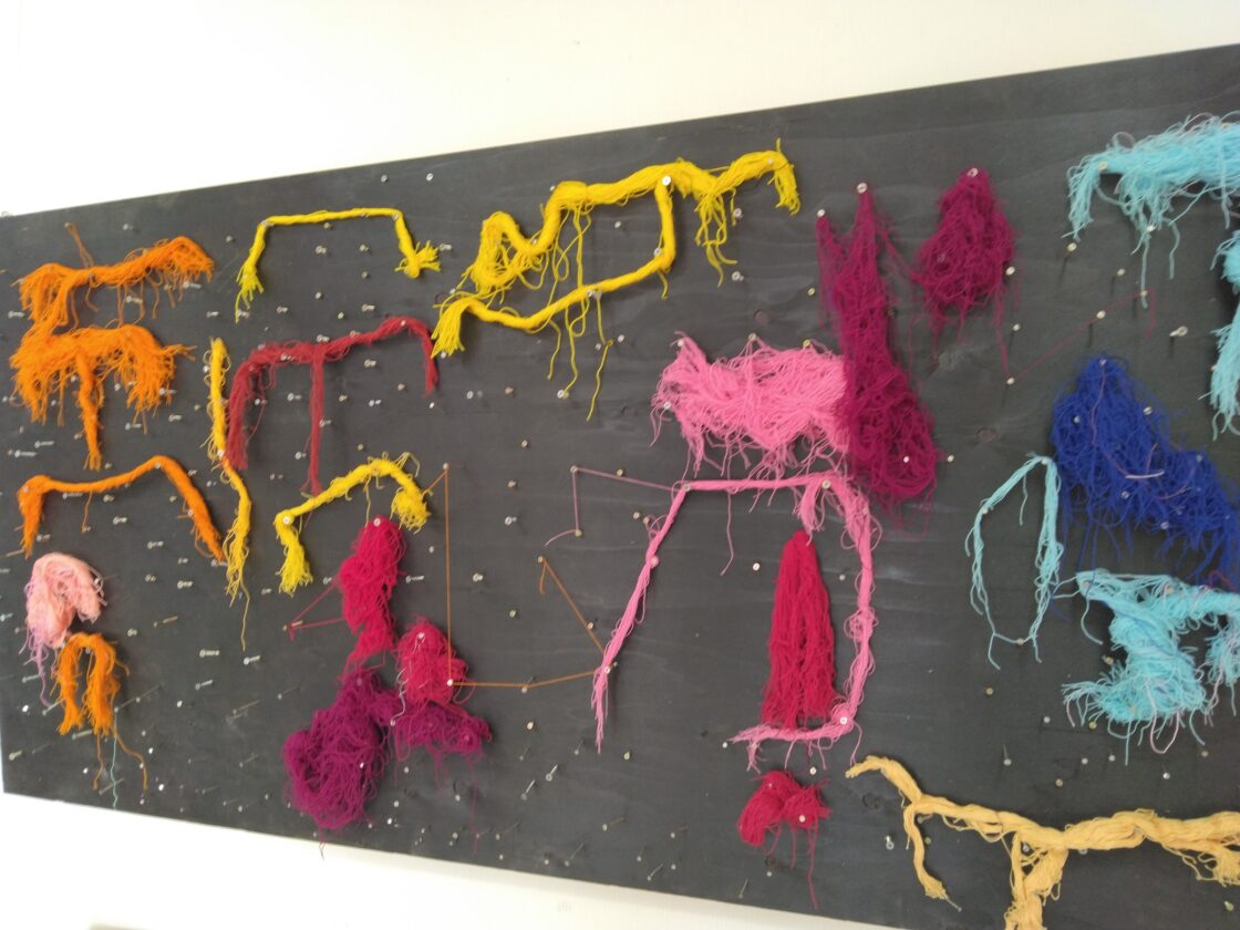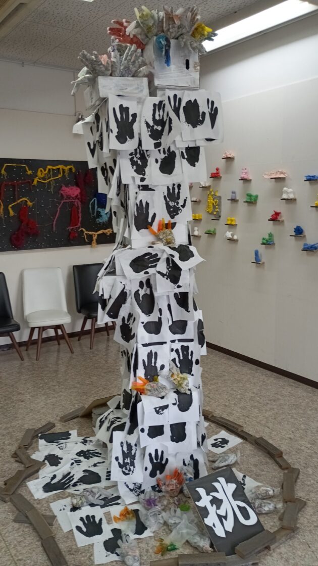 ▲みんなで作った手形のオブジェ カッコよい作品に仕上がったよね~、マジで!
