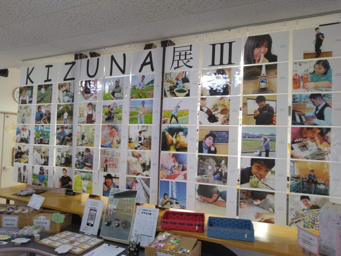 ▲入口にはきずなの里での活動記録を写真でたのしんでいただけるよう演出してみました。