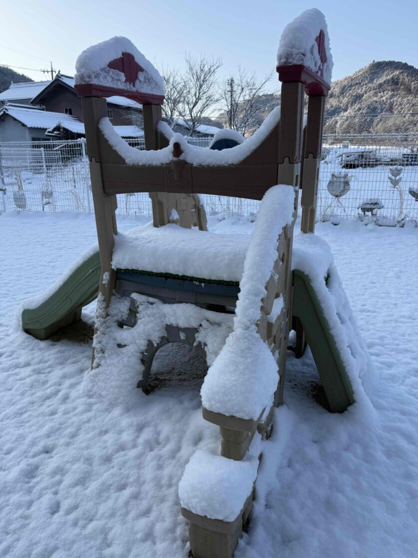 遊具やかえるの顔も雪に埋もれてしまいました☃💦