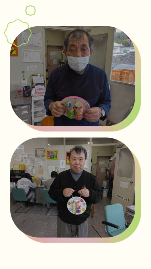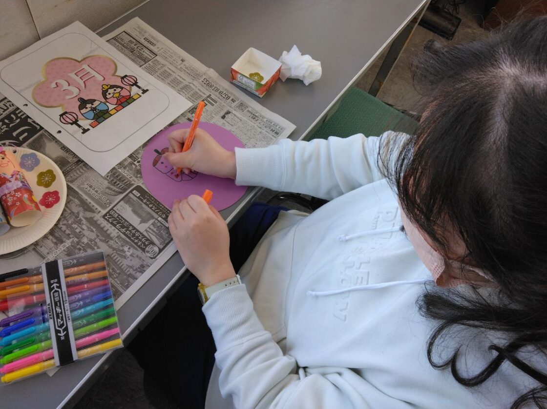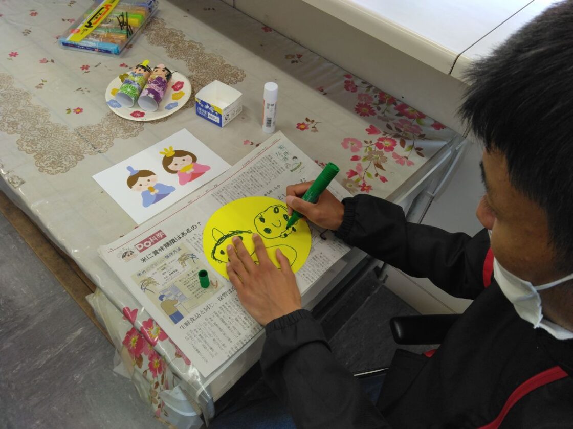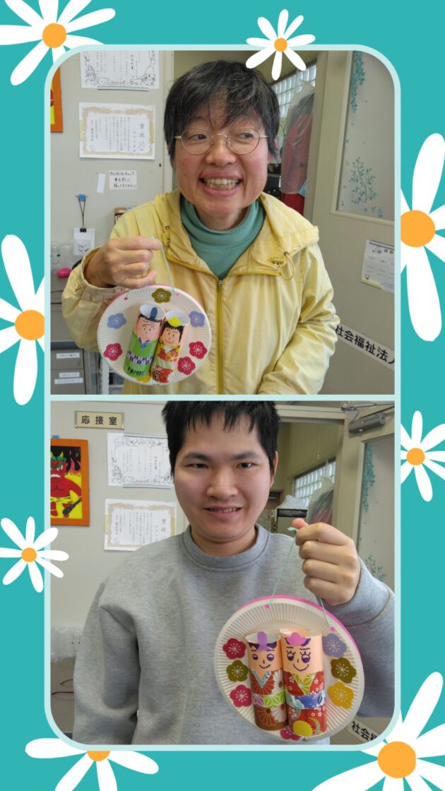 紙皿に描いたり貼ったり色鮮やかに飾りつけをしています