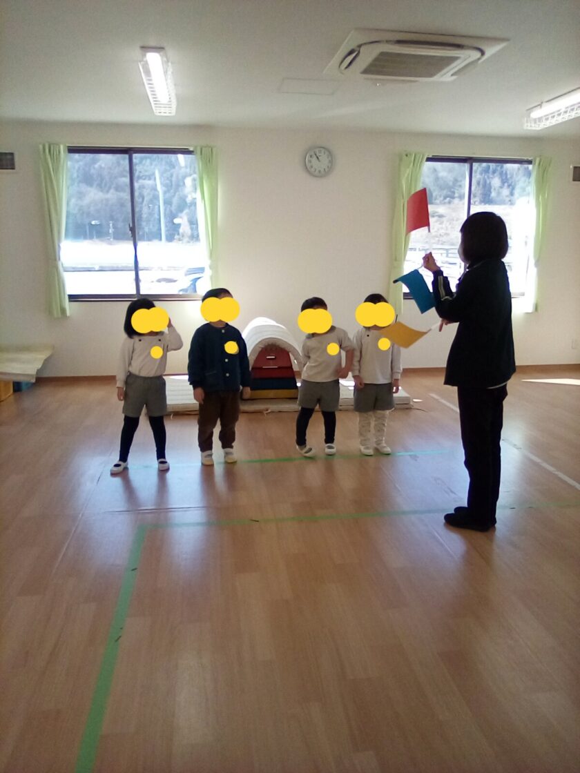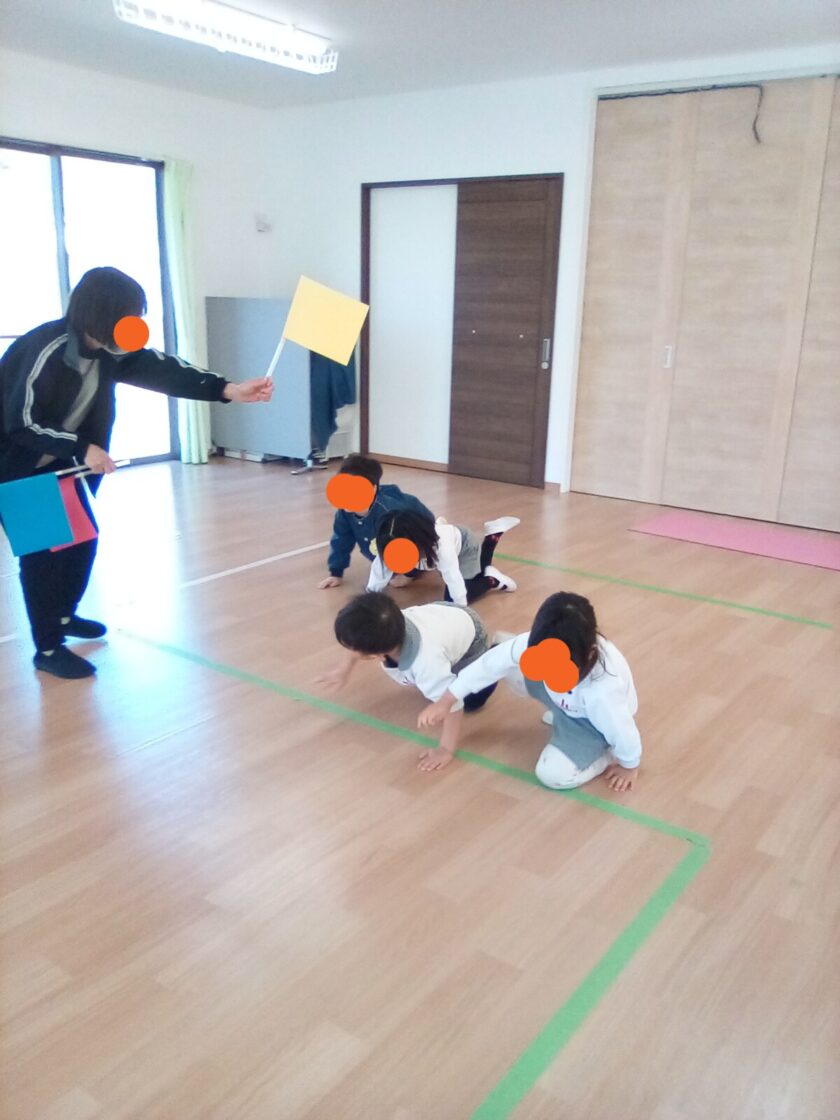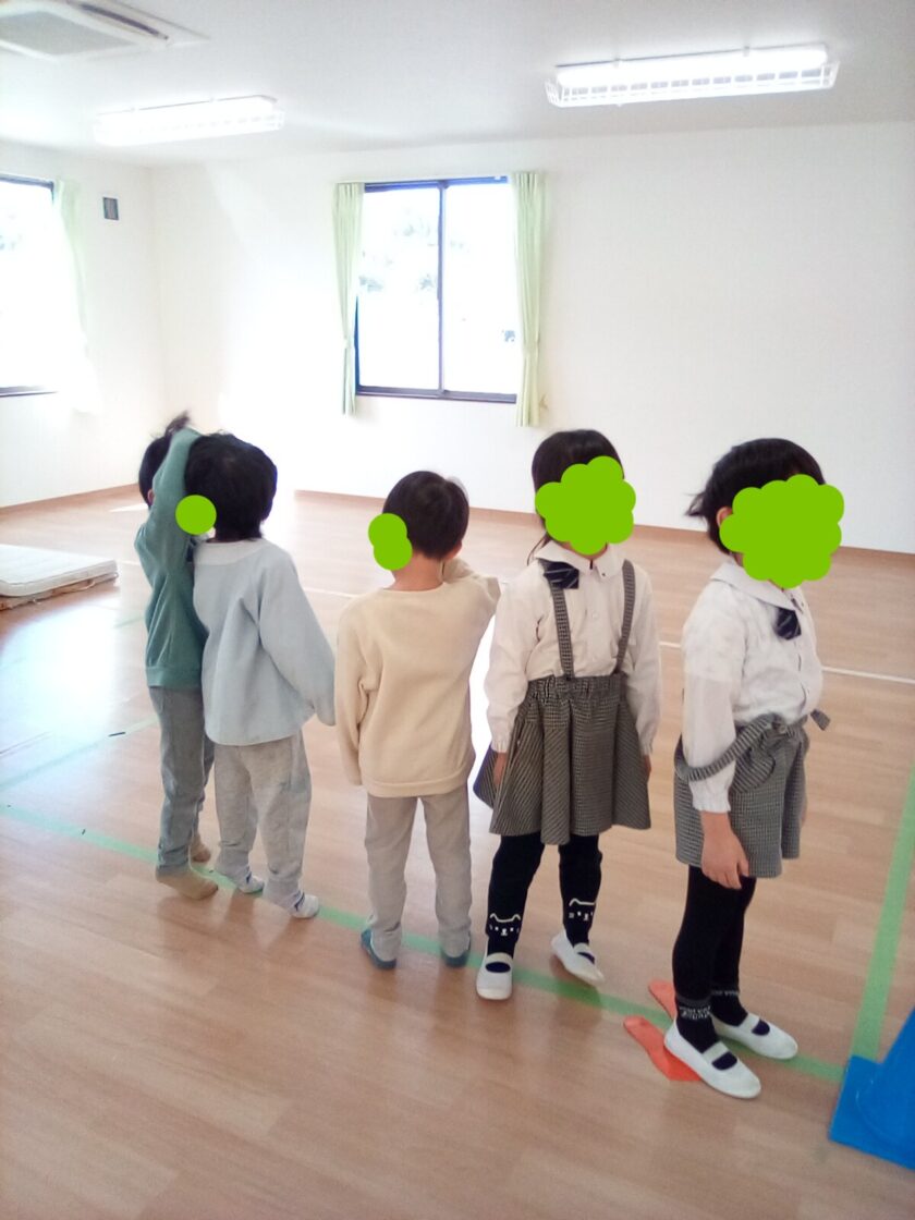 全体で信号ゲーム、年長児は整列ゲームを行いました。