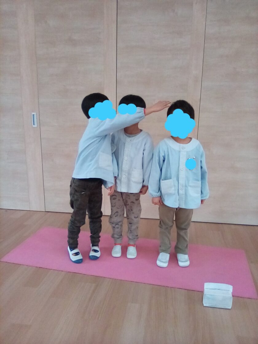 整列ゲームは、みんなで話し合って身長の高い順、誕生日の順など、決まったテーマ別に並んでいきます。