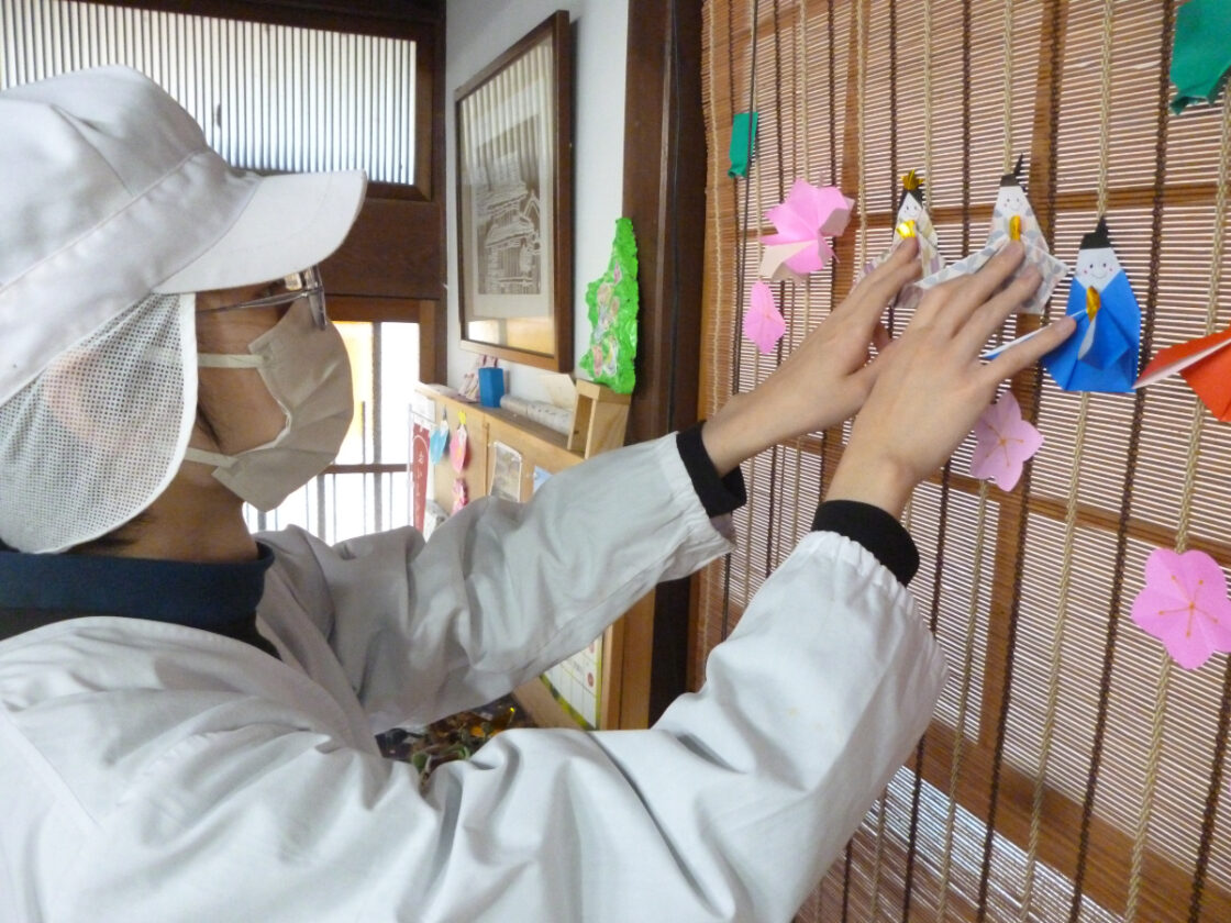 店舗の玄関に、みんなで飾りました✨
