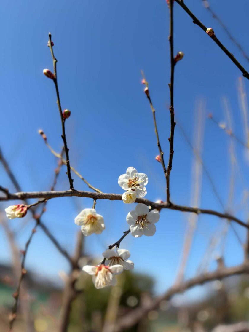 ちょっと前までは蕾だった梅の花も
