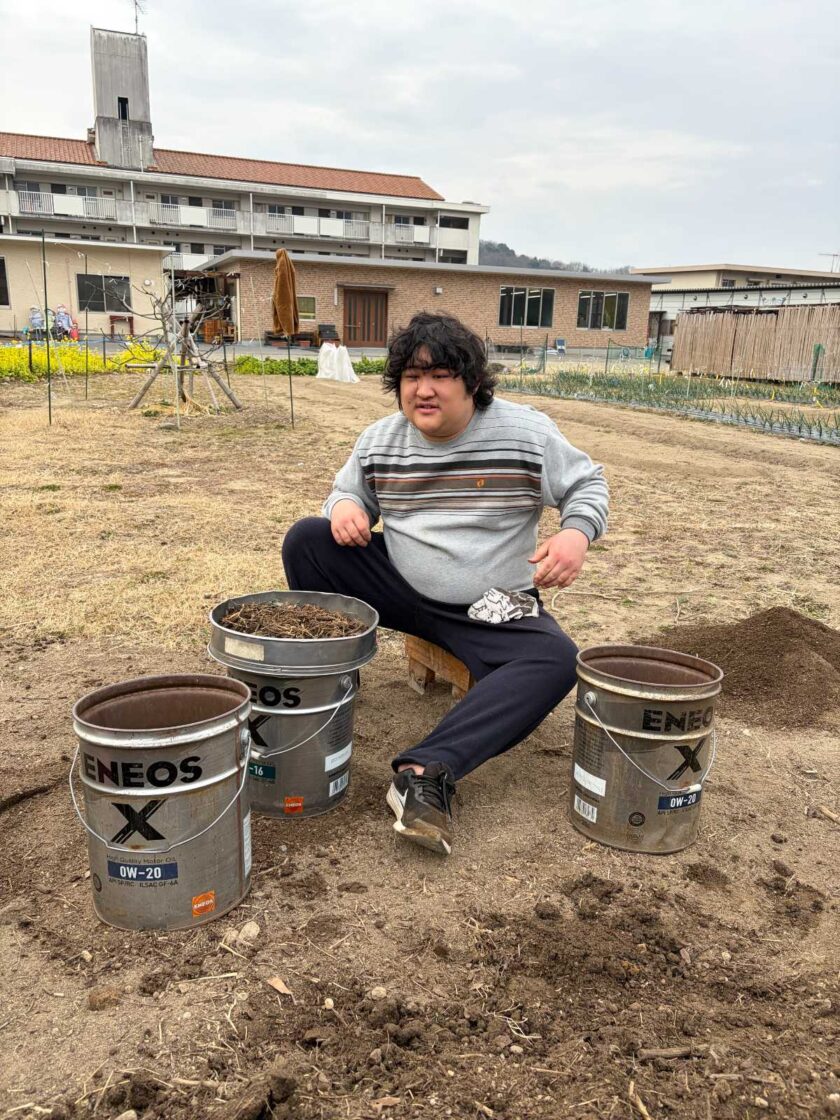 真剣に土ふるいと向き合う利用者さん👏