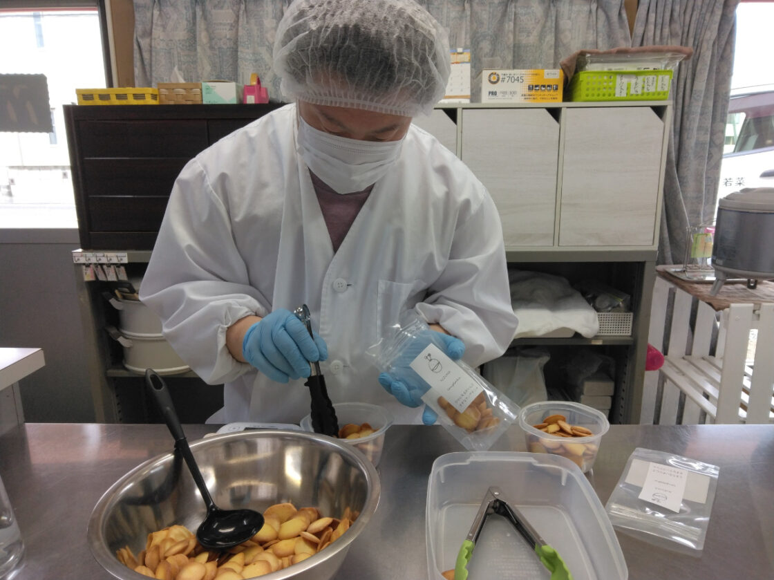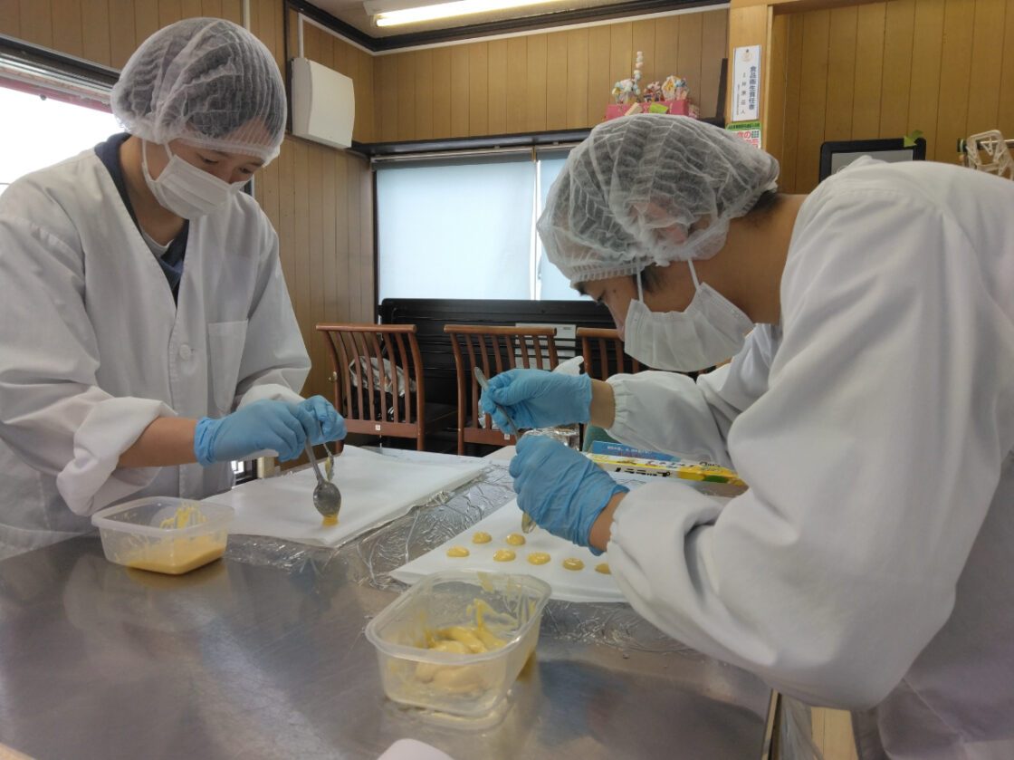 ▲『きずなラングドシャ』作り