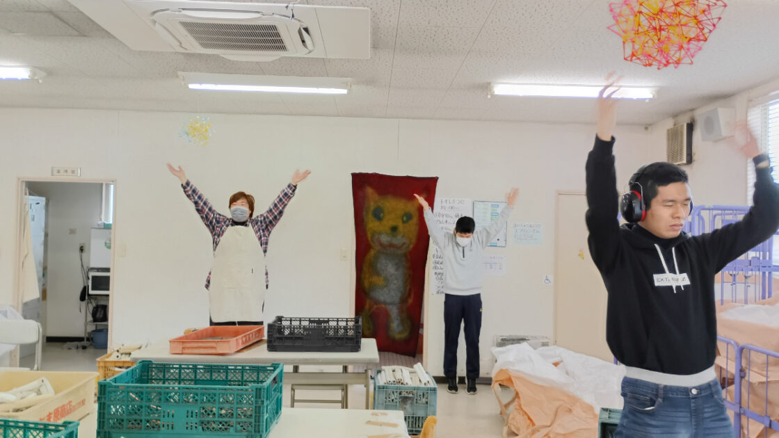 さて、今回リサイクル事業部では作業を始める前にラジオ体操を取り入れてみました。