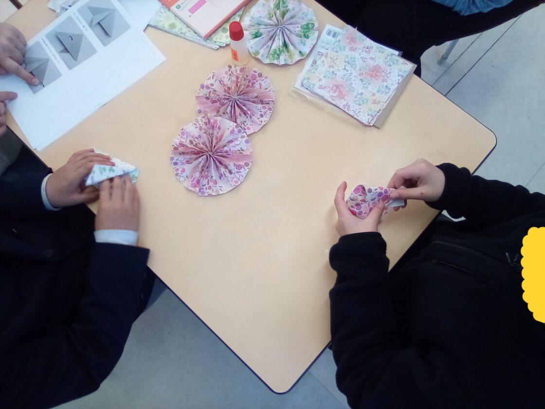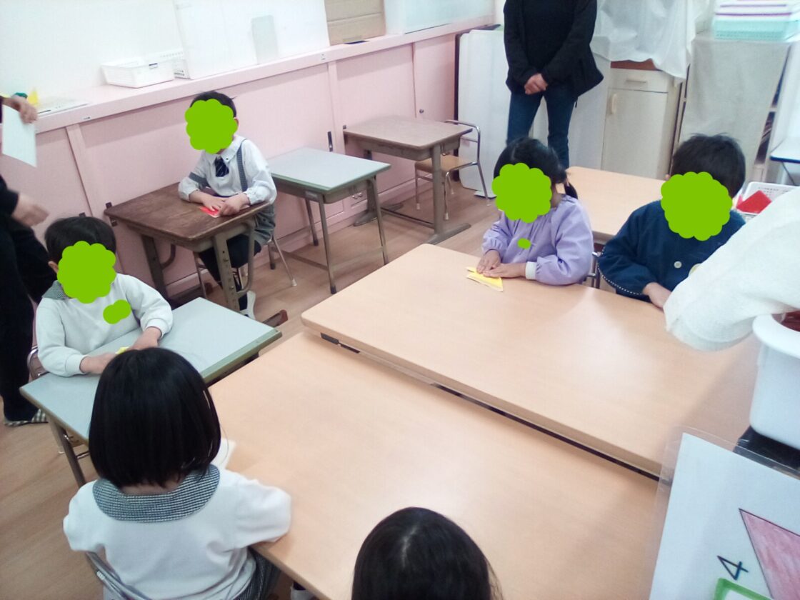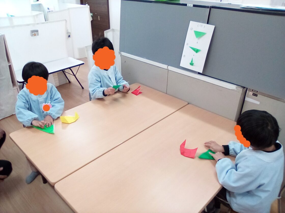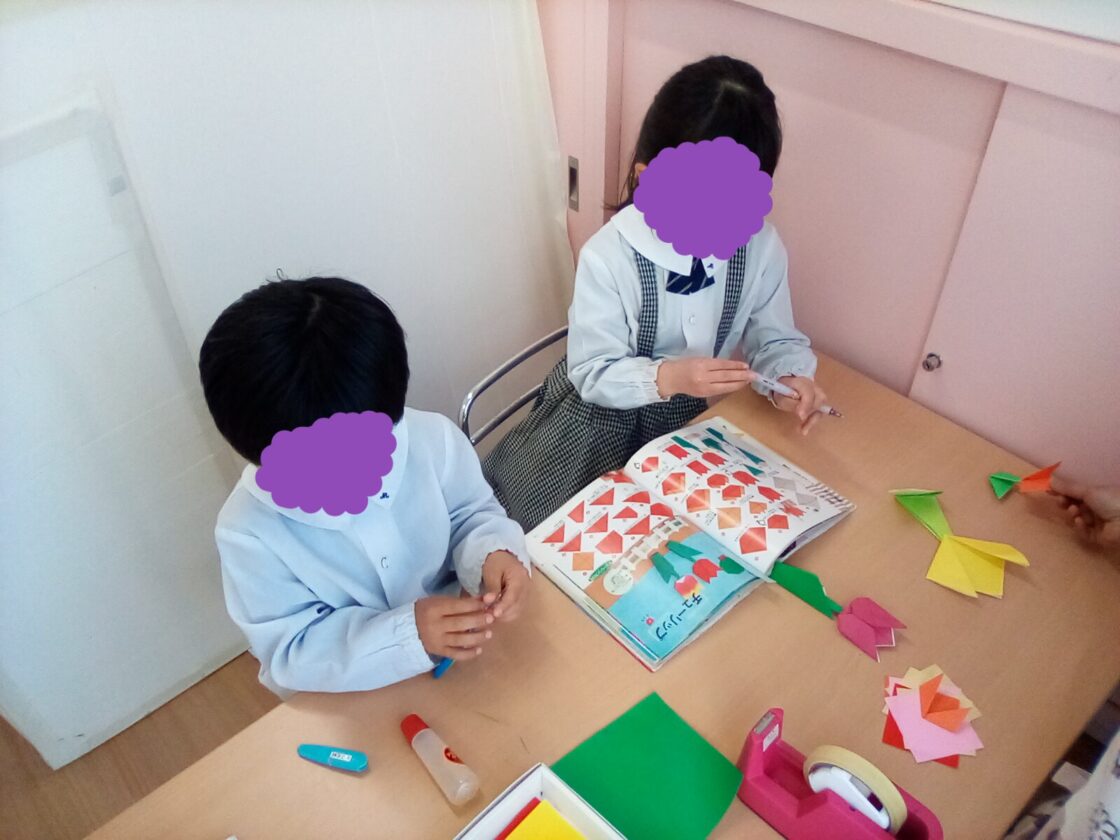 みんなで、たくさん折って壁面が色とりどりのチューリップで飾られます🤗