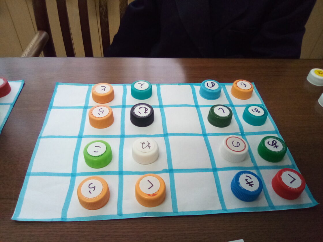 さいころをふって、止まったマスの文字が最初につく言葉を考えます。言えなかったら1つ戻る...濁音と半濁音が少し難しいけれど、みんなたくさんの言葉を知っています👏ゲーム感覚で出来るのもいいですね😉👍