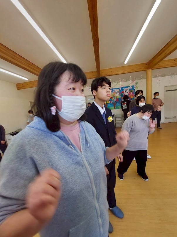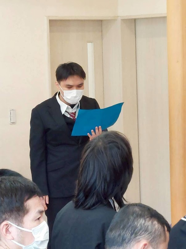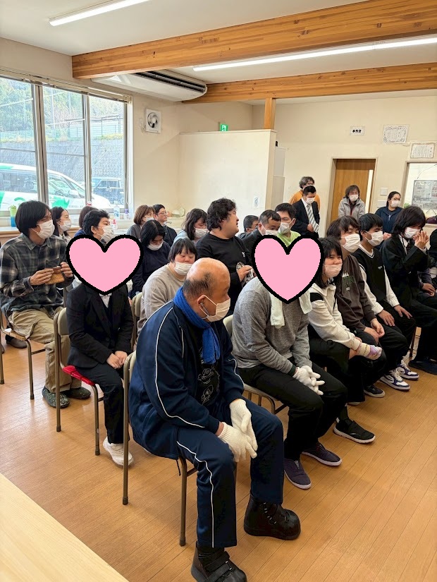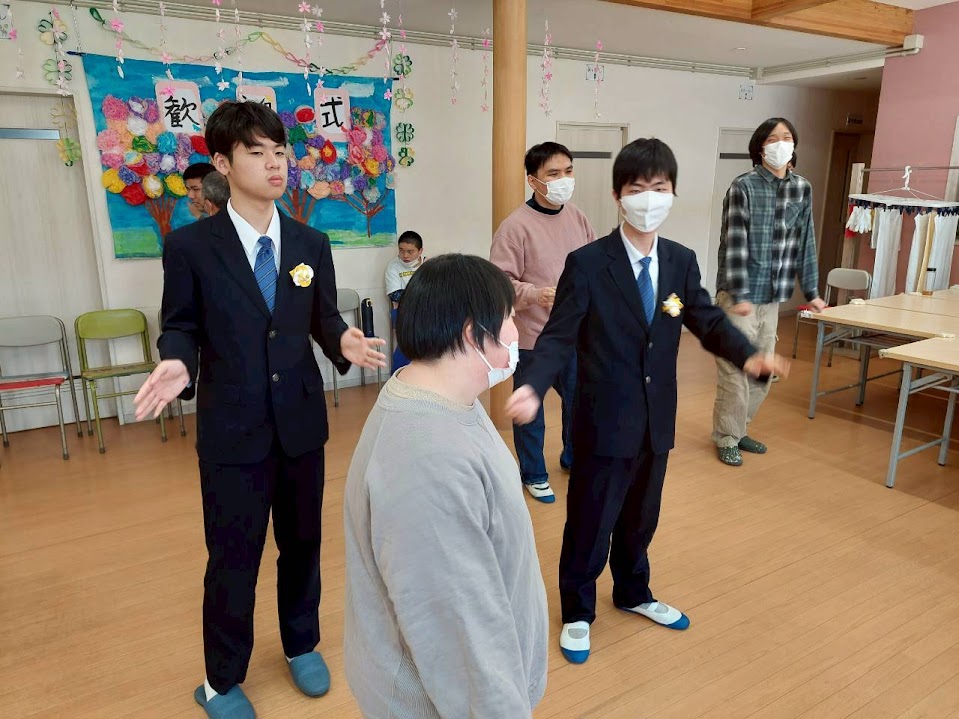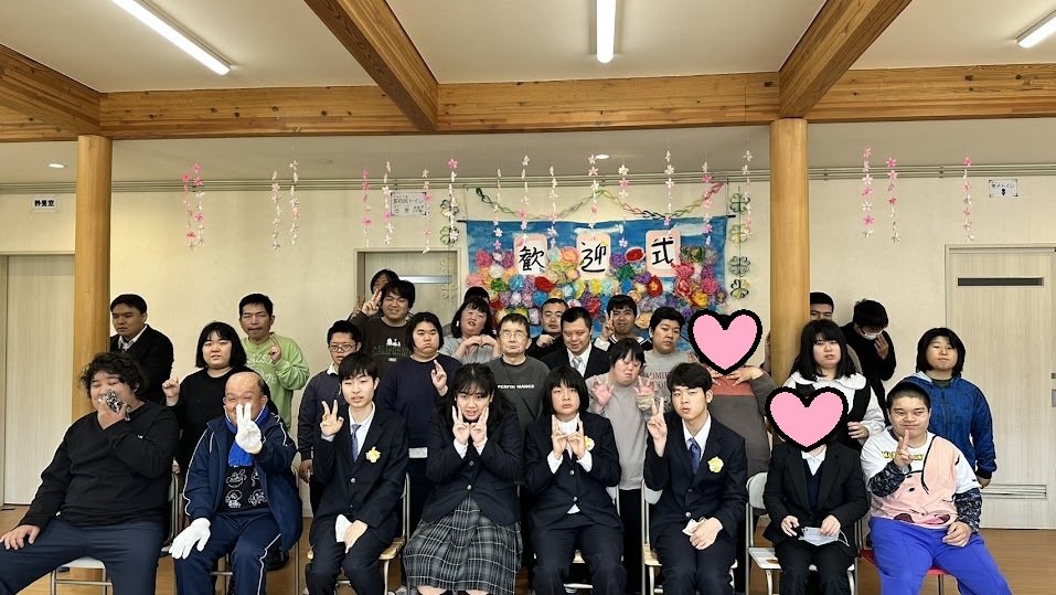 先輩利用者さんの司会で式を進め、歓迎の言葉を送って記念撮影📸