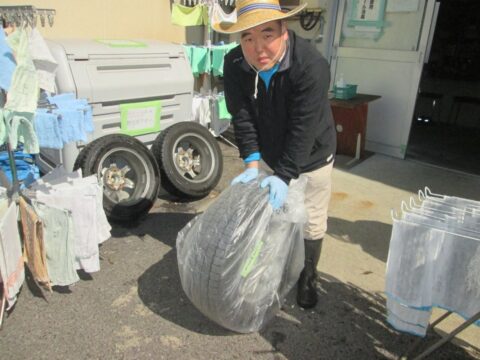 タイヤが乾いたら倉庫に運んで、終了!お疲れ様でした!👏☺️