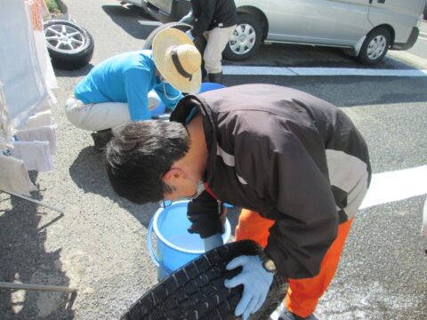 沢山有る公用車のタイヤを1本ずつ清掃するのはとても大変ですが