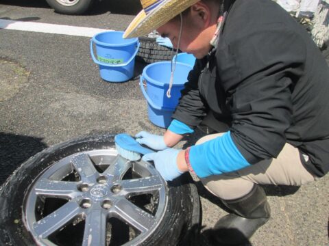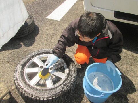 タイヤ交換後は、清掃班の利用者さんが毎回綺麗に洗ってくれます。