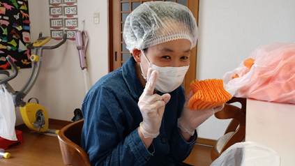 フルーツキャップを担当している内職事業部では、みなさん慣れた手つきでとても頑張っておられます。