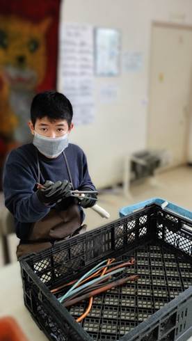 分別の作業でホースや銅線などのテープを剥がす作業も上手にこなされています✨