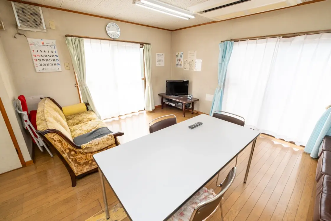 あかねの里には5つ居住があります。清水ヶ丘にあかねの里(男性)、水呑町にみのみの里Ⅰ(男性)、みのみの里Ⅱ(男性)、みのみの里Ⅲ(女性)、神辺町にゆうひの里(男性)家庭的な雰囲気で過ごされています。短期入所の受け入れも行っています。受け入れ人数は、 あかねの里【2名】、みのみの里Ⅰ【空床型】、みのみの里Ⅱ【2名】、みのみの里Ⅲ【空床型】となっております。