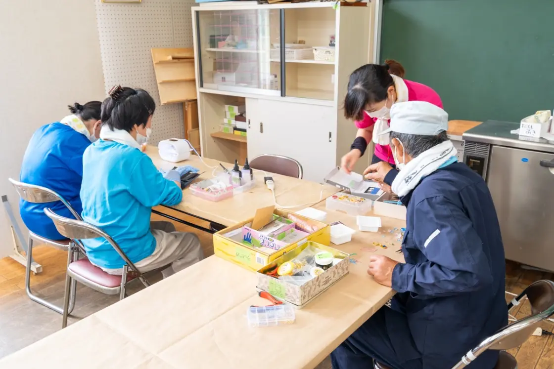 旧綾目小学校の校舎で活動していますので、広々とした環境で過ごして頂けます。活動内容は、畑作業、美術活動での作品作り、レジンを使用した商品作り、布でエコバックも作っています。尾道市から委託された清掃作業にも取り組み、外に出る機会も多くあり、楽しく活動しています。ご利用者さん一人ひとりに必要な支援を考えながら、実践しております。